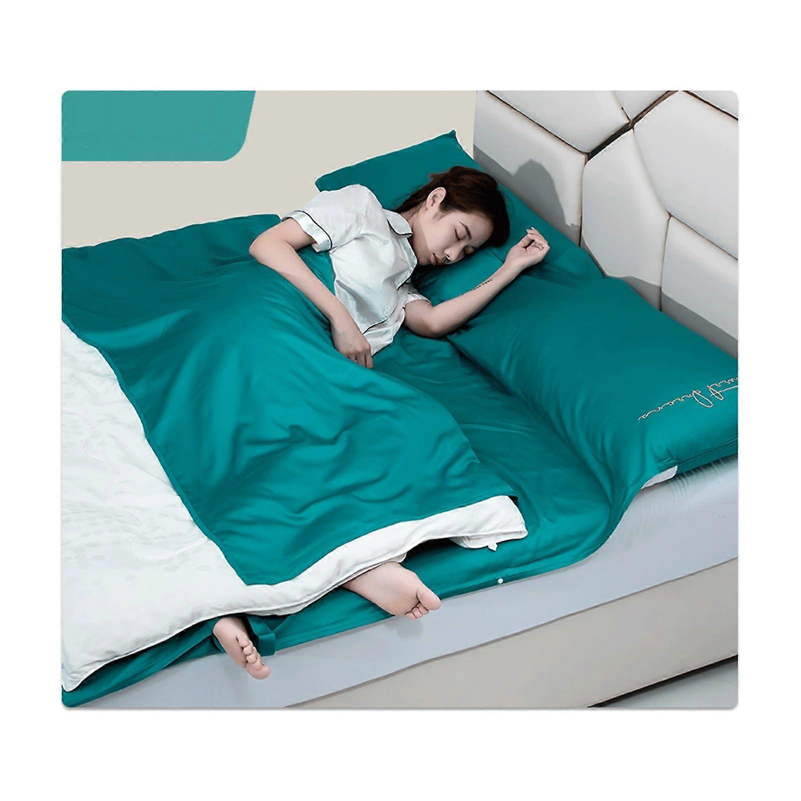 Sleeping Bag Liner Cotton Travel Sheet with Pillow Pocket Lightweight Breathable Green 200x210cm