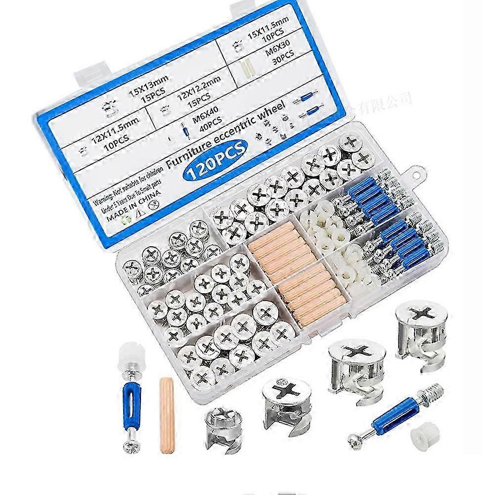 120pcs Cam Locks For Furniture,furniture Fasteners Connectors With Multi-size Nuts,bolts And Wood Dowel Pins