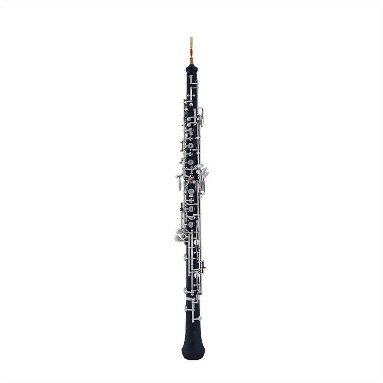 Oboe for adult students and beginners with a Bakelite body, C key, nickelplated keys, and a semiautomatic mechanism. Designed to offer reliable playability and straightforward maintenance for practice, lessons, and student performances. Key benefits Clear learning path: C key layout and standard fingering make it suitable for students transitioning from beginner to intermediate repertoire. Durable construction: Bakelite body provides a stable, lowmaintenance instrument that stands up to frequent practice. Smooth key action: Nickelplated keys resist corrosion and deliver consistent feel for reliable finger movement during practice and performance. Easier operation: Semiautomatic mechanism simplifies certain key transitions, helping learners focus on tone and technique rather than complex key coordination. Studentfocused design: Sized and voiced for adult students and beginners, offering a balanced response that supports developing embouchure and breath control. Important attributes Function: Full oboe function for practice, lessons, ensemble work, and recitals. Compatibility: Works with standard oboe reeds and commonly used studentlevel accessories. Key and tuning: C key configuration suitable for standard oboe repertoire and instruction. Material: Bakelite body for durability and stable tonal characteristics; nickelplated metal keys for longevity and smooth operation. Mechanism: Semiautomatic mechanism to ease certain fingerings without requiring fully automatic key systems. Practical applications Classroom and lesson use: Reliable daily practice instrument for music students in school bands, conservatory foundations, or private lessons. Ensemble and rehearsal: Suitable for chamber groups, school orchestras, and small ensembles where consistent intonation and responsive keywork are needed. Student recitals and auditions: Designed to give beginners usable tone and dependable mechanics during performances and entrylevel auditions. What to expect An oboe built for learning and frequent use with straightforward maintenance needs. A playable setup that helps students focus on technique development, tone production, and repertoire growth. This instrument is intended for adult students and beginners seeking a practical, durable oboe with standard C tuning, nickelplated keys, and a semiautomatic mechanism.