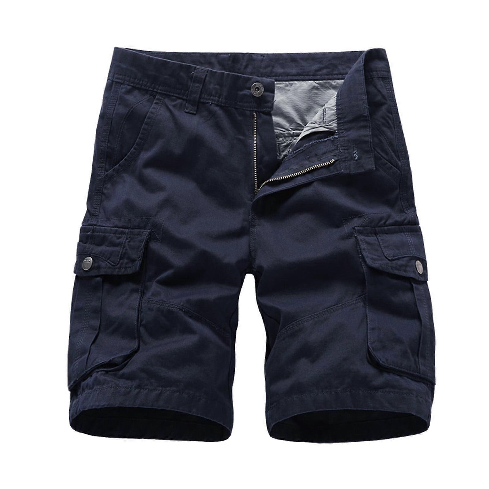 heyac Mens Cargo Shorts Elastic Waist Cotton 3/4 Capri Pants Lightweight Cotton Hop Trousers Regular Fit Casual Cargo Shorts with Pockets