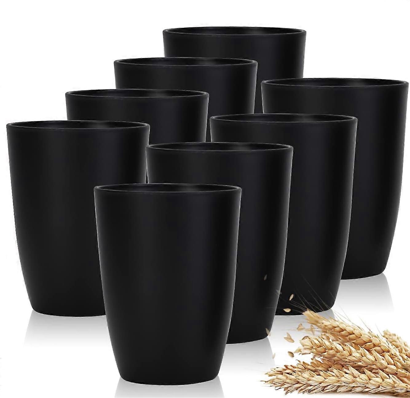8-Pack 16oz Stackable Wheat Straw Juice Tumblers, BPA-Free, Dishwasher Safe, Reusable BBQ/Party Cups for Kids & Adults, Black