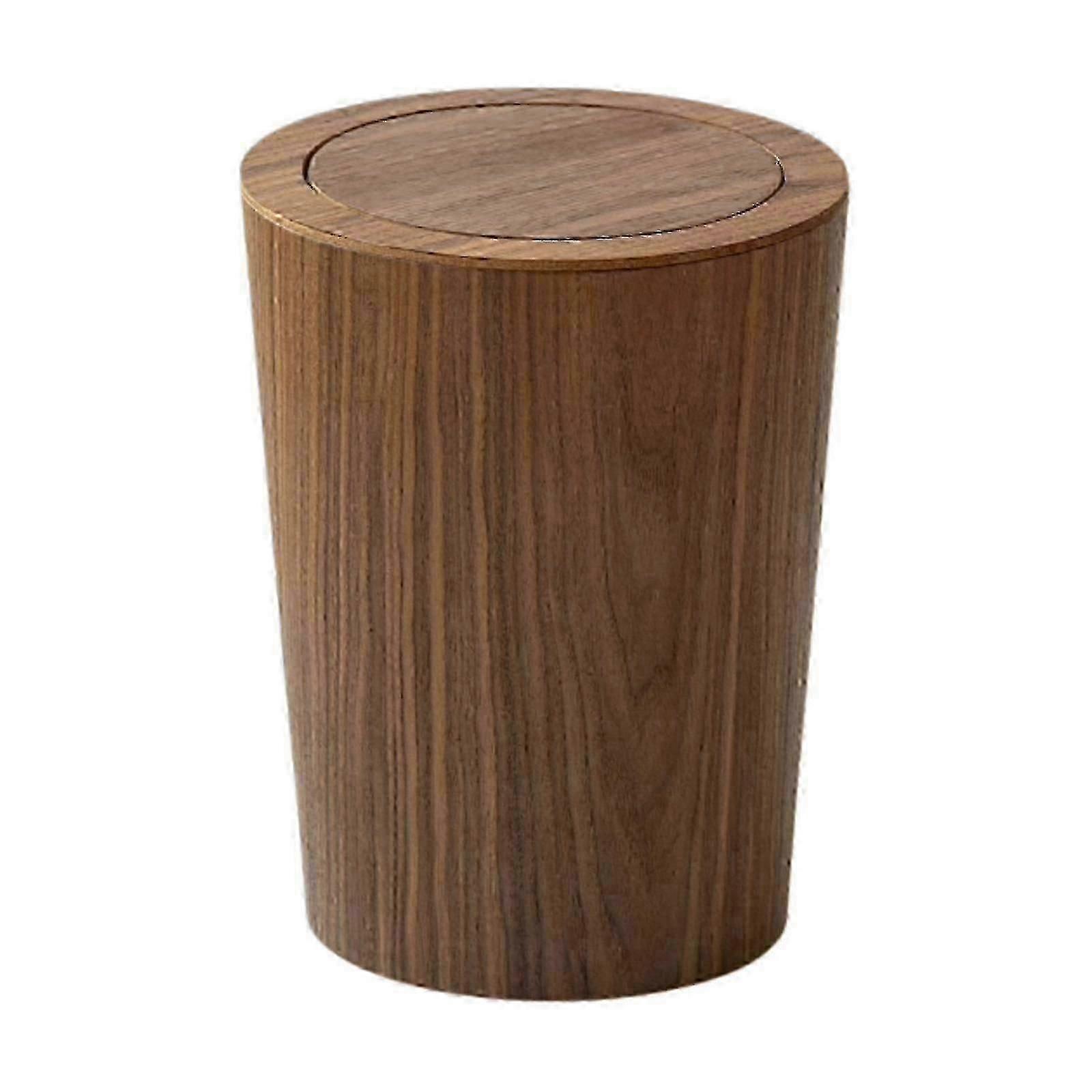 Modern wooden waste bin with lid for home office kitchen bedroom, round Japanese design trash can MONG