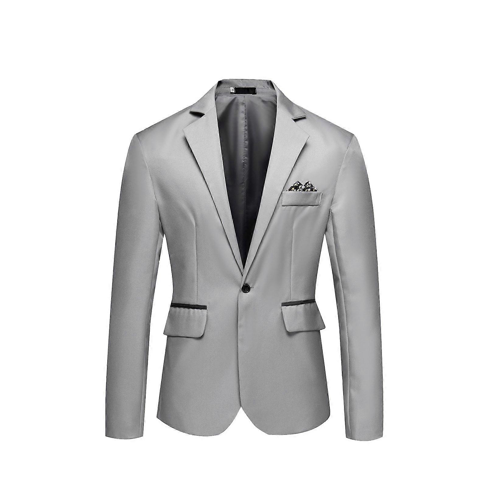 Men'S England Solid Color High Quality Casual Single Breasted Suit Gray M