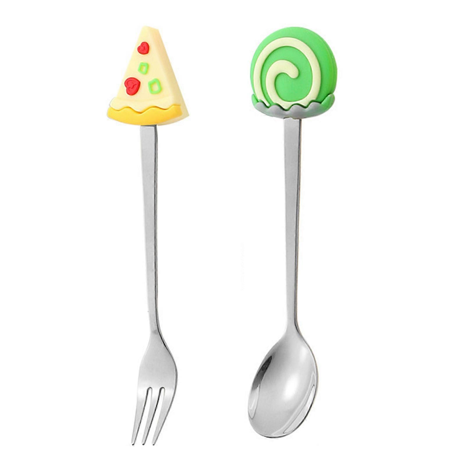 Stainless Steel Spoon And Fork Set Creative Round Head Spoon Cartoon Dessert Utensils Dishwasher Safe Cutlery for Gifts And Parties