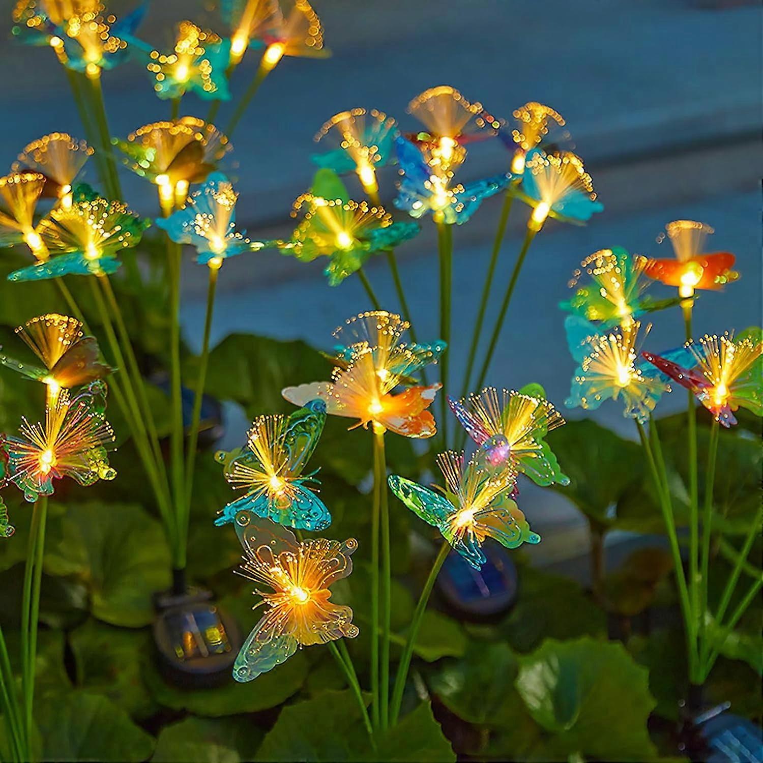 2-Pack Solar Butterfly Garden Lights, Multi-Color Fiber Optic, Waterproof, Warm Light, Compatible with Outdoor Yard Decor