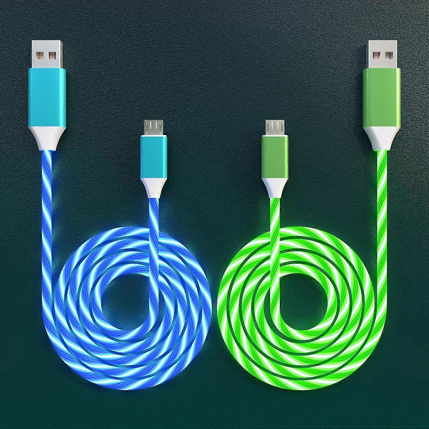 2 Pack Micro USB Cable Android Charger, Led Light Up Glowing Micro USB Fast Charging Cord for Android and Other Micro USB Devices(3.3ft,Blue & Green)