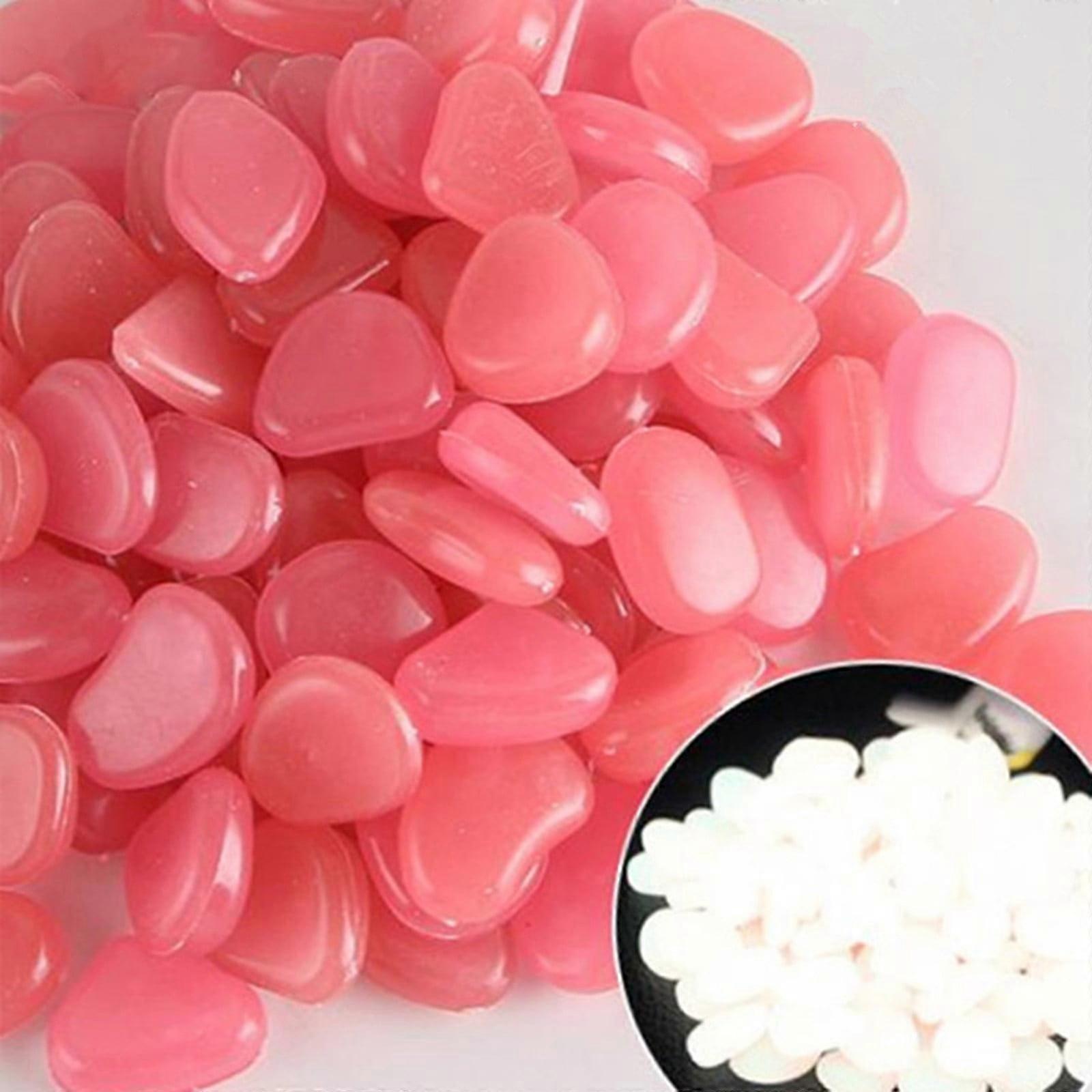 150pcs Red Glow Pebbles for Outdoor/Garden/Aquarium Decor, Solar & Light Charged, Compatible with Outdoor Lighting