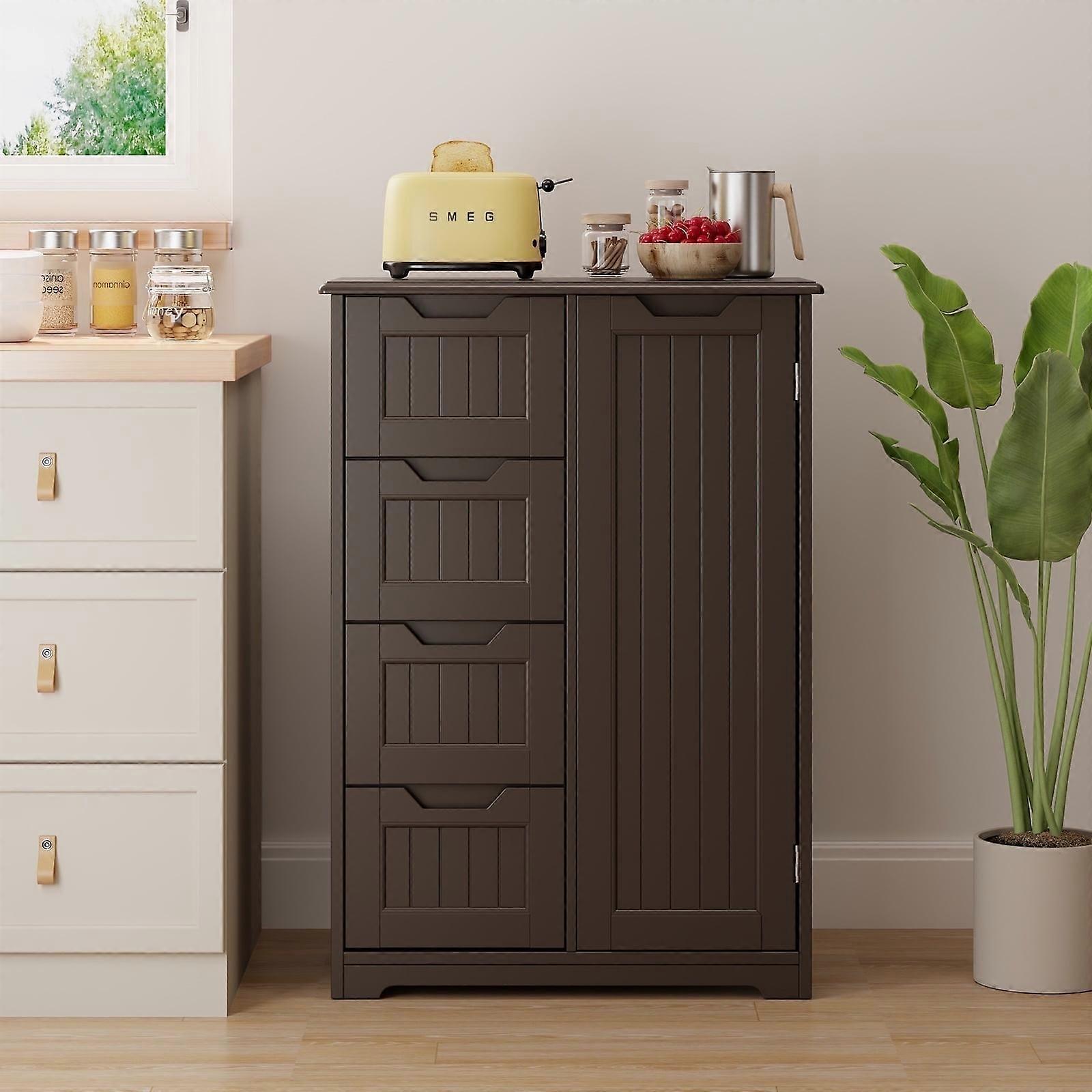 33" Dark Brown Moisture-Resistant Anti-Tip Pantry Cabinet with Door, 4 Drawers & Shelves
