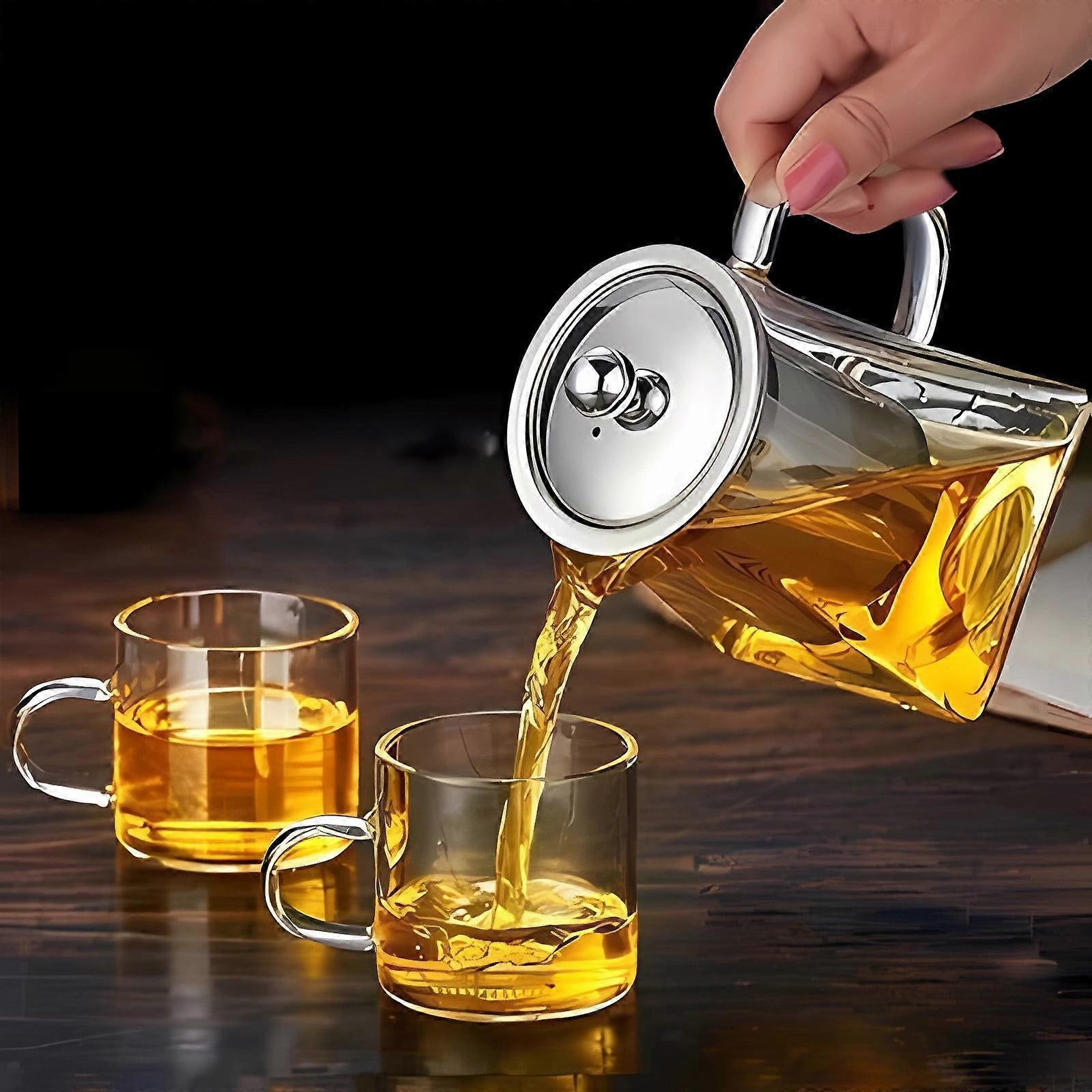Glass Teapot with Stainless Steel Infuser, 34oz Heat-Resistant Pot for Loose Leaf Tea, Clear Borosilicate Kettle for Stovetop & Tea Party, 1.2QT