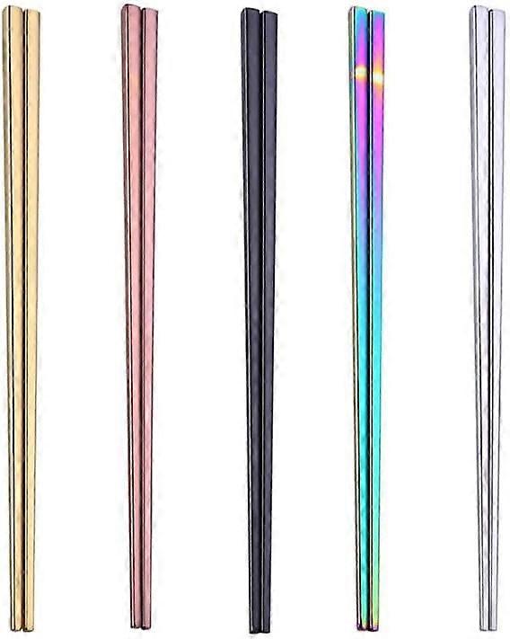 5-Pair Non-Slip Colorful Square Stainless Steel Chopsticks, Dishwasher Safe, Reusable – Compatible with All Kitchens