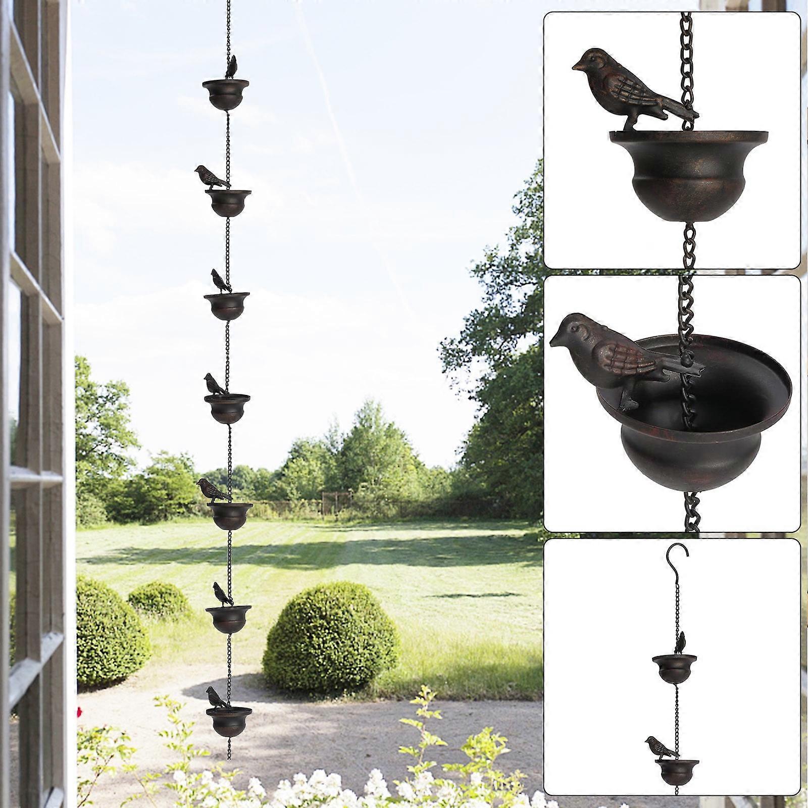 Mobile Birds On Cups Rain Chain 8FT,Mobile Bird Outdoor Rain Chain Outdoor Decoration Hanging Chain Black