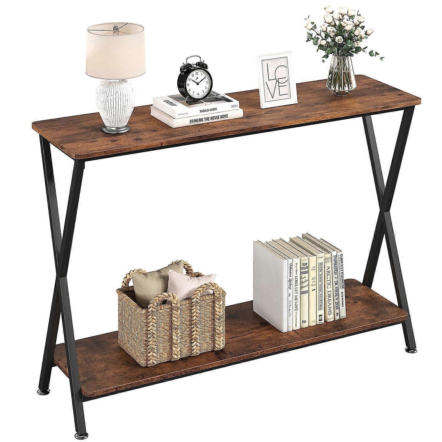 Console Table, Narrow Entryway Table with Storage Shelf and Metal Frame, 41.3” Behind Couch Table for Living Room, Brown Finish