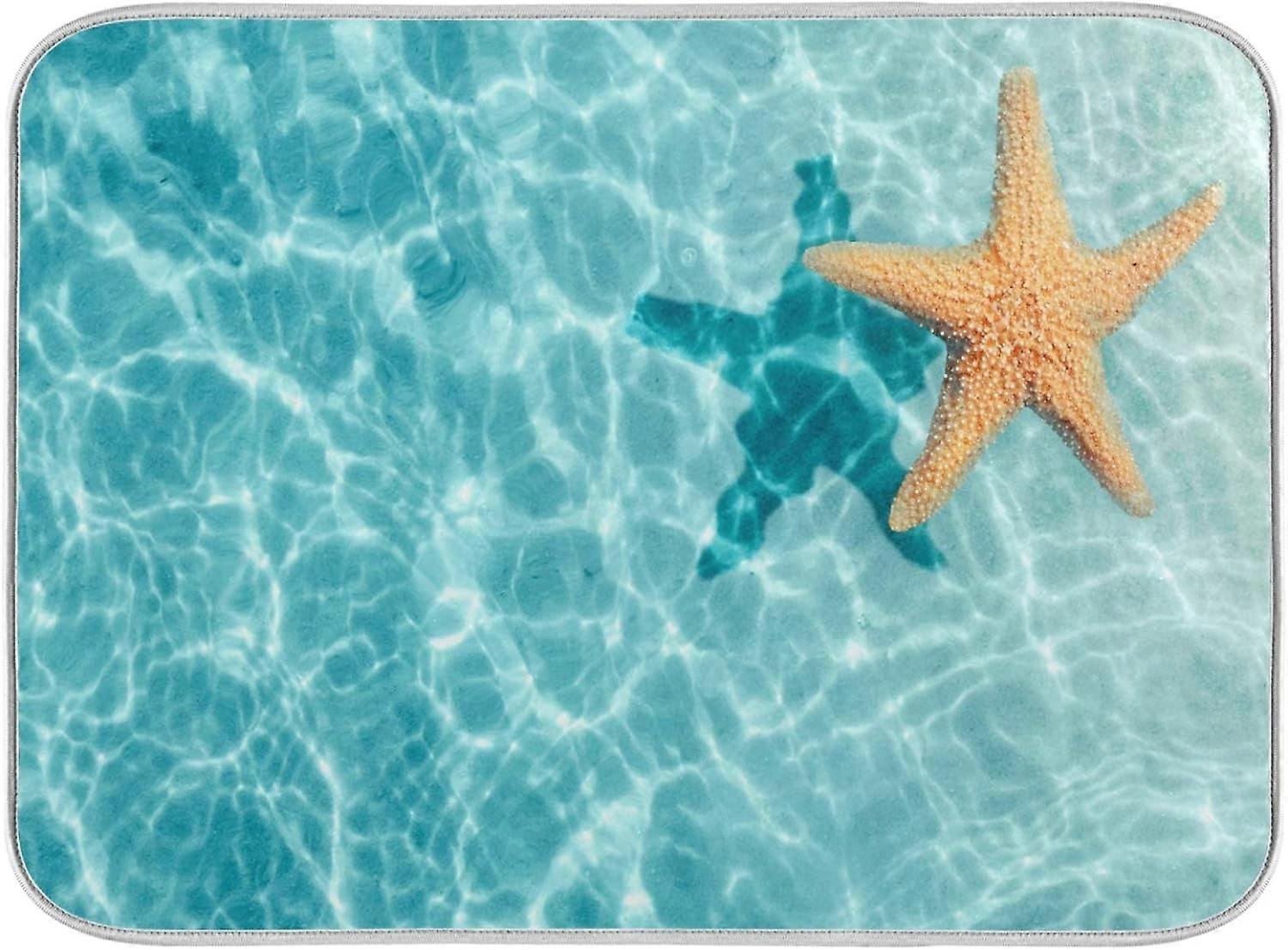 Summer Starfish Beach Dish Drying Mat, Tropical Ocean Design, Absorbent & Easy-Clean Drainer Mat for Kitchen Sink (18"x24")