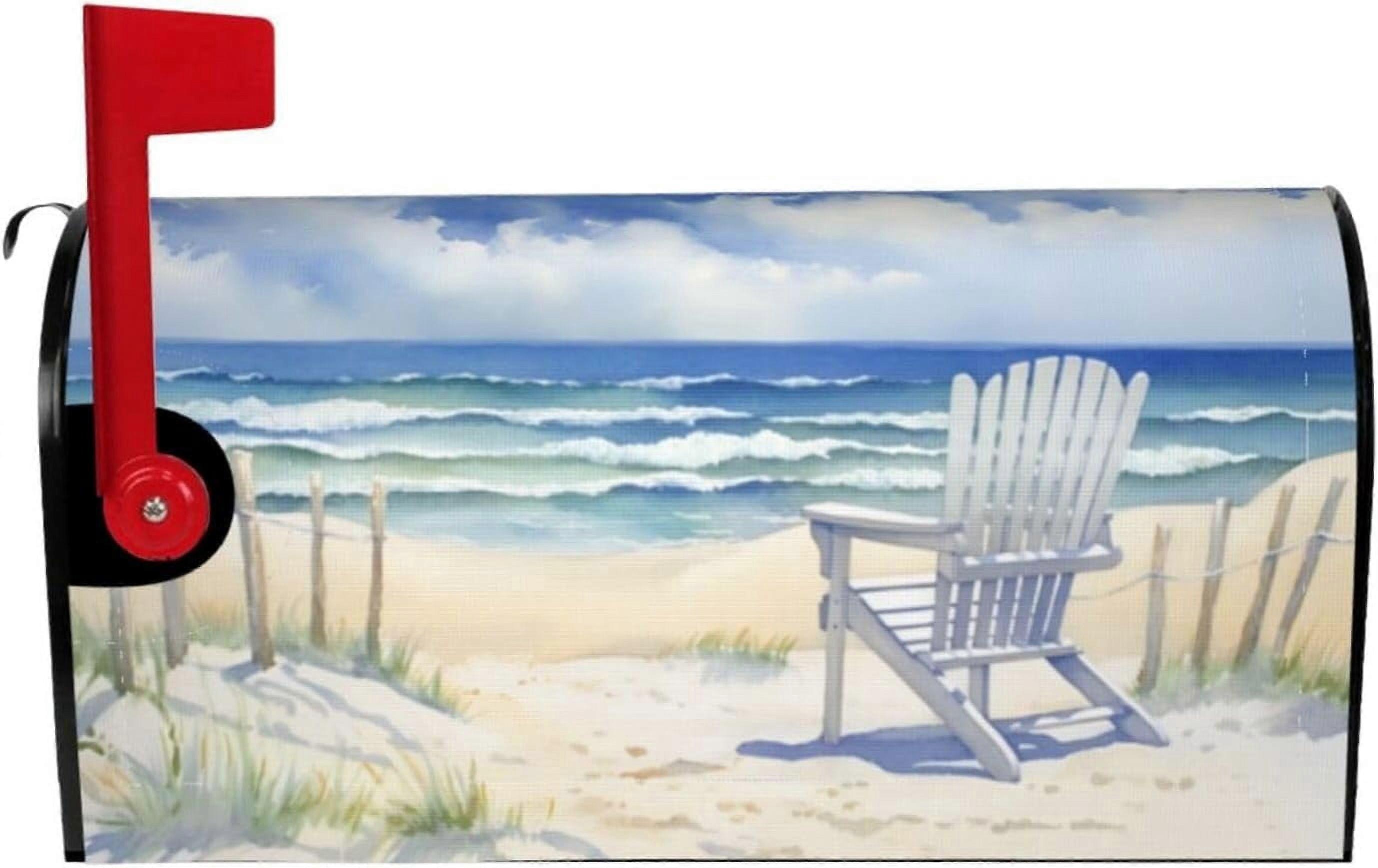 Beach Summer Mailbox Cover, Waterproof Magnetic Wrap Compatible with Standard Post Boxes – 25.5" x 21", Outdoor Farmhouse Decor