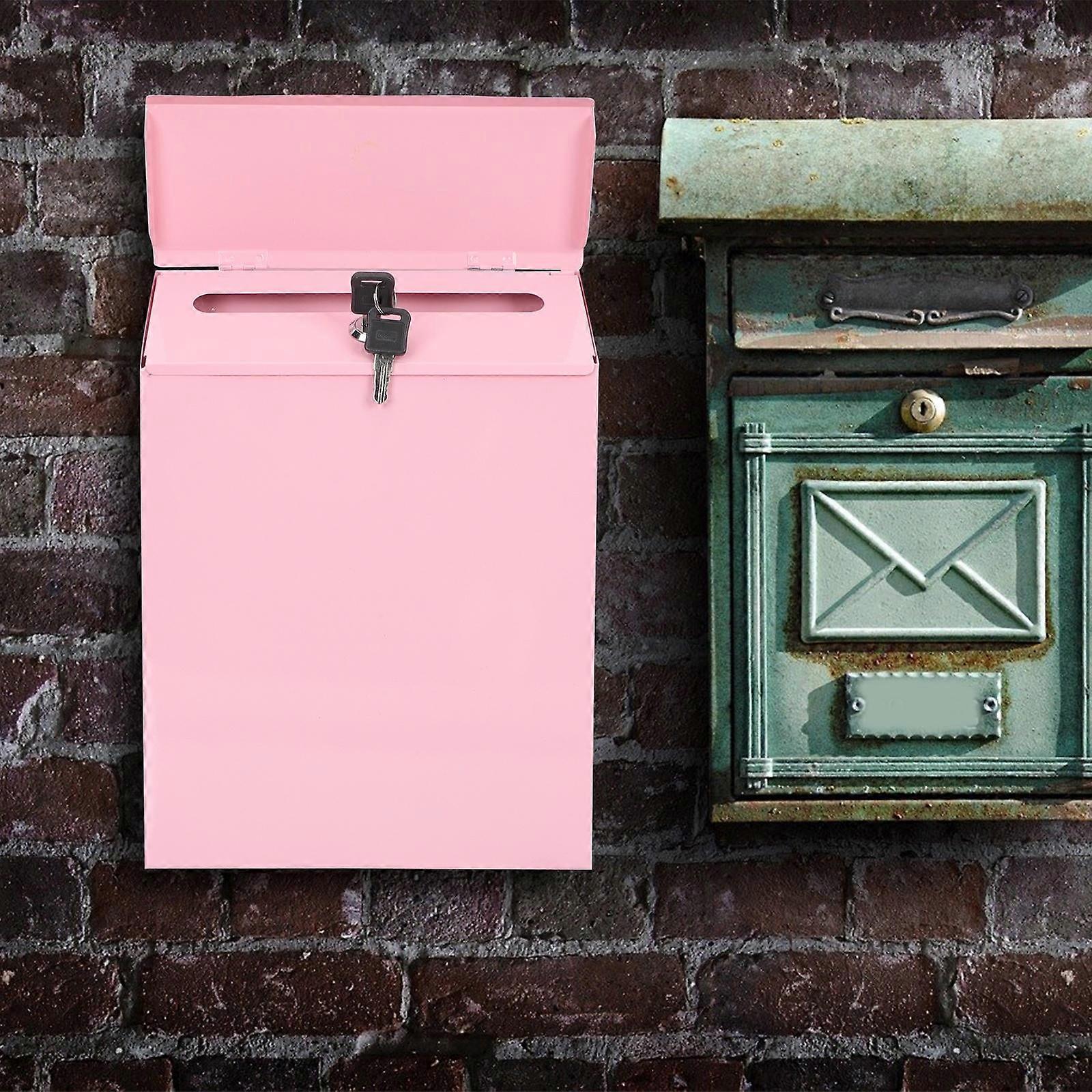 1Pcs Pink Rectangular Iron Mail Box for Home Use Wall Mounted Locking Mailbox 11.8x9.1x2.4in