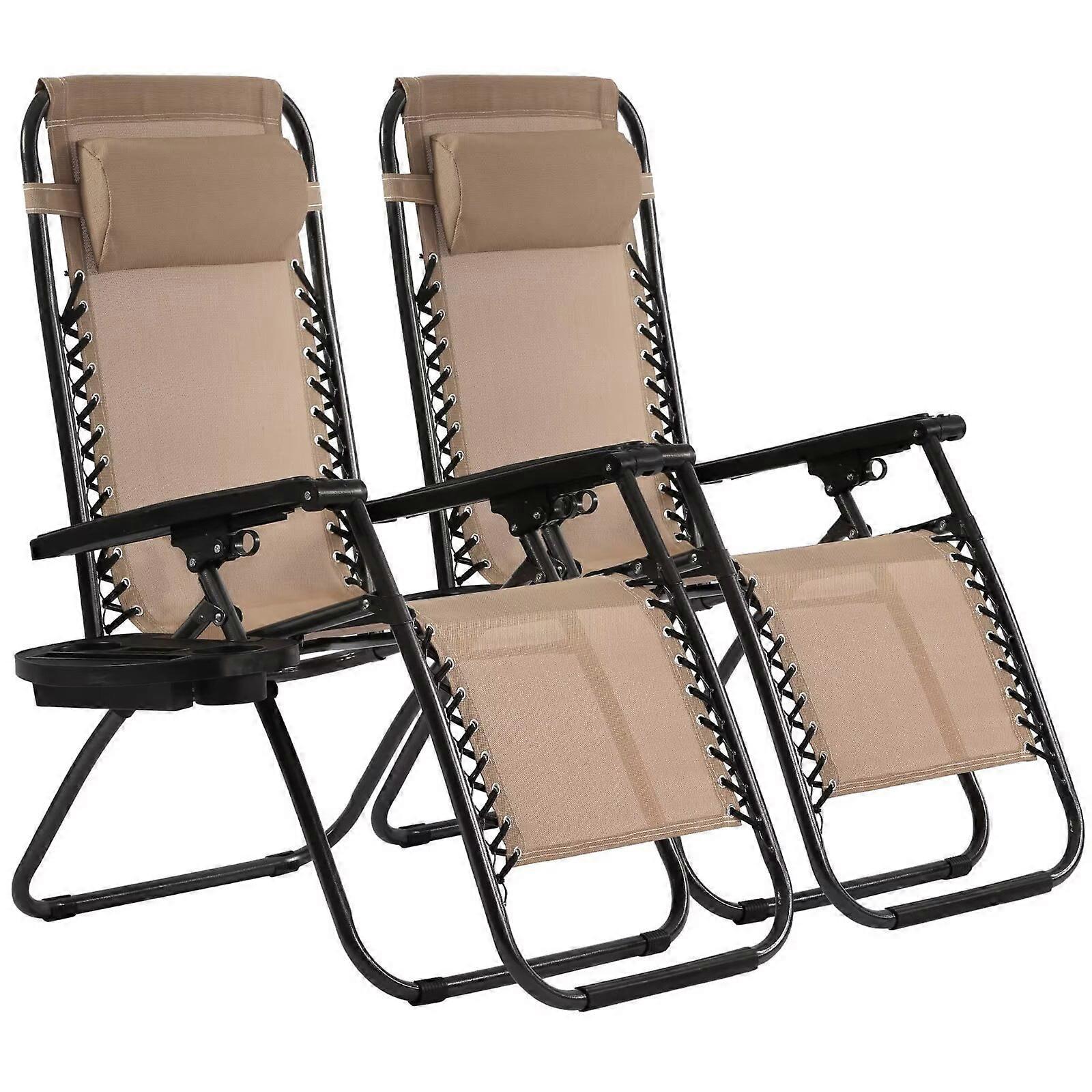 Folding Patio Chairs Set of 2, Zero Gravity Lounge Chairs with Pillows & Cup Holders, Adjustable for Deck/Beach/Yard