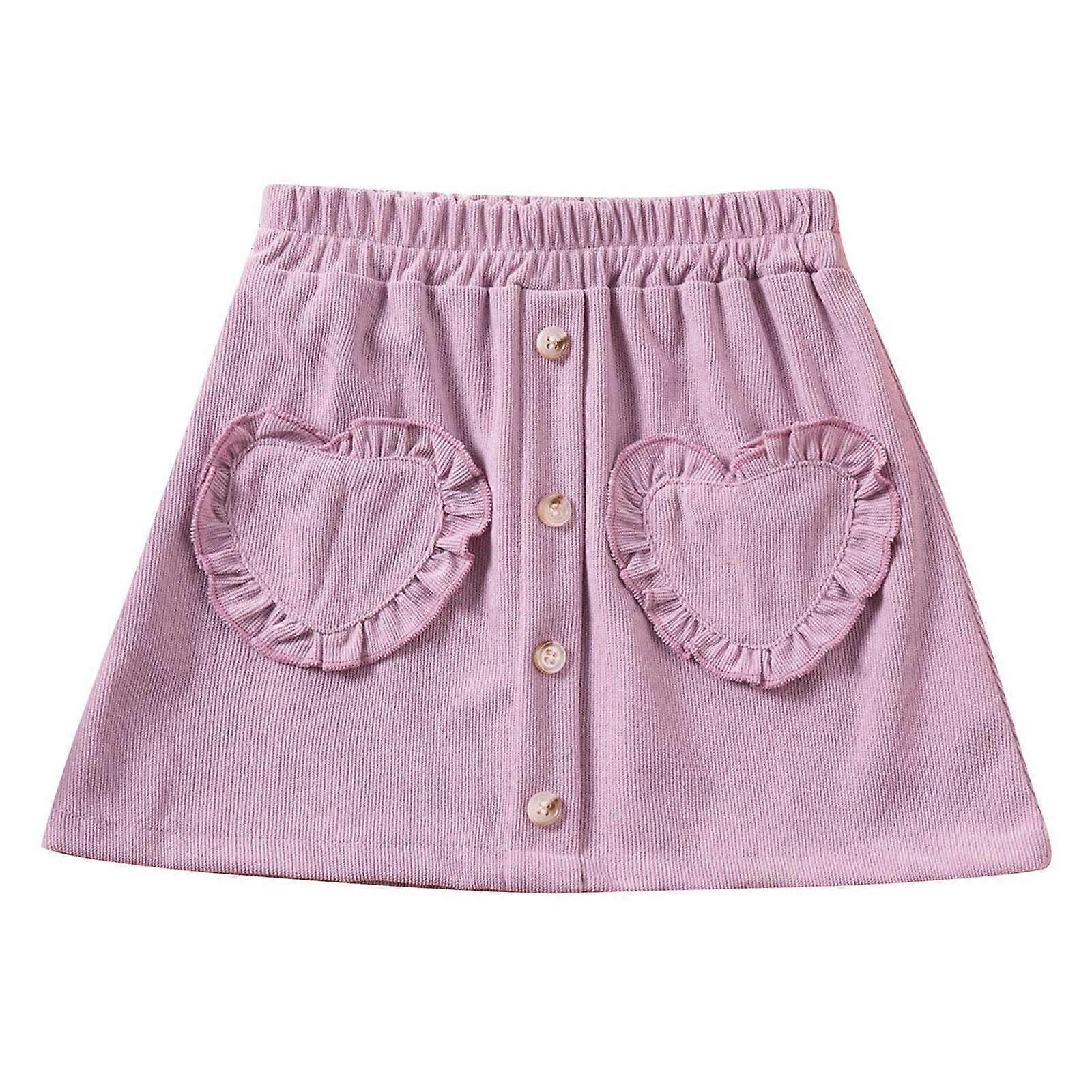 Girls' Summer Skirt, Elastic Waist, Solid Purple, Heart Pockets, Comfortable Casual Short Skirt for 1-2 Years