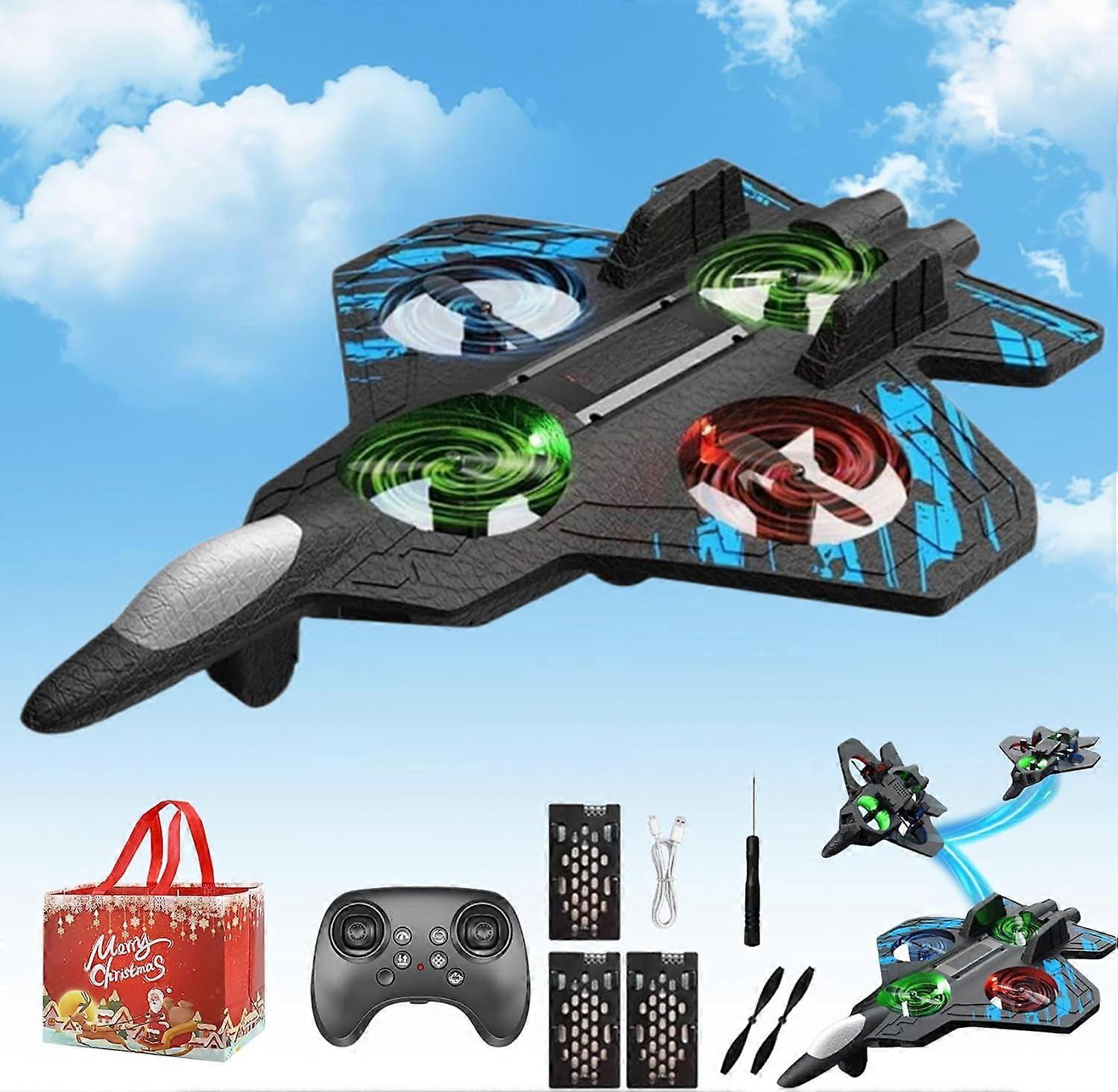 Skyriders RC Jet Drone – 360° Flips, LED Lights, 2.4GHz Stunt Fighter, High Speed & Precision (Blue, 3 Batteries)