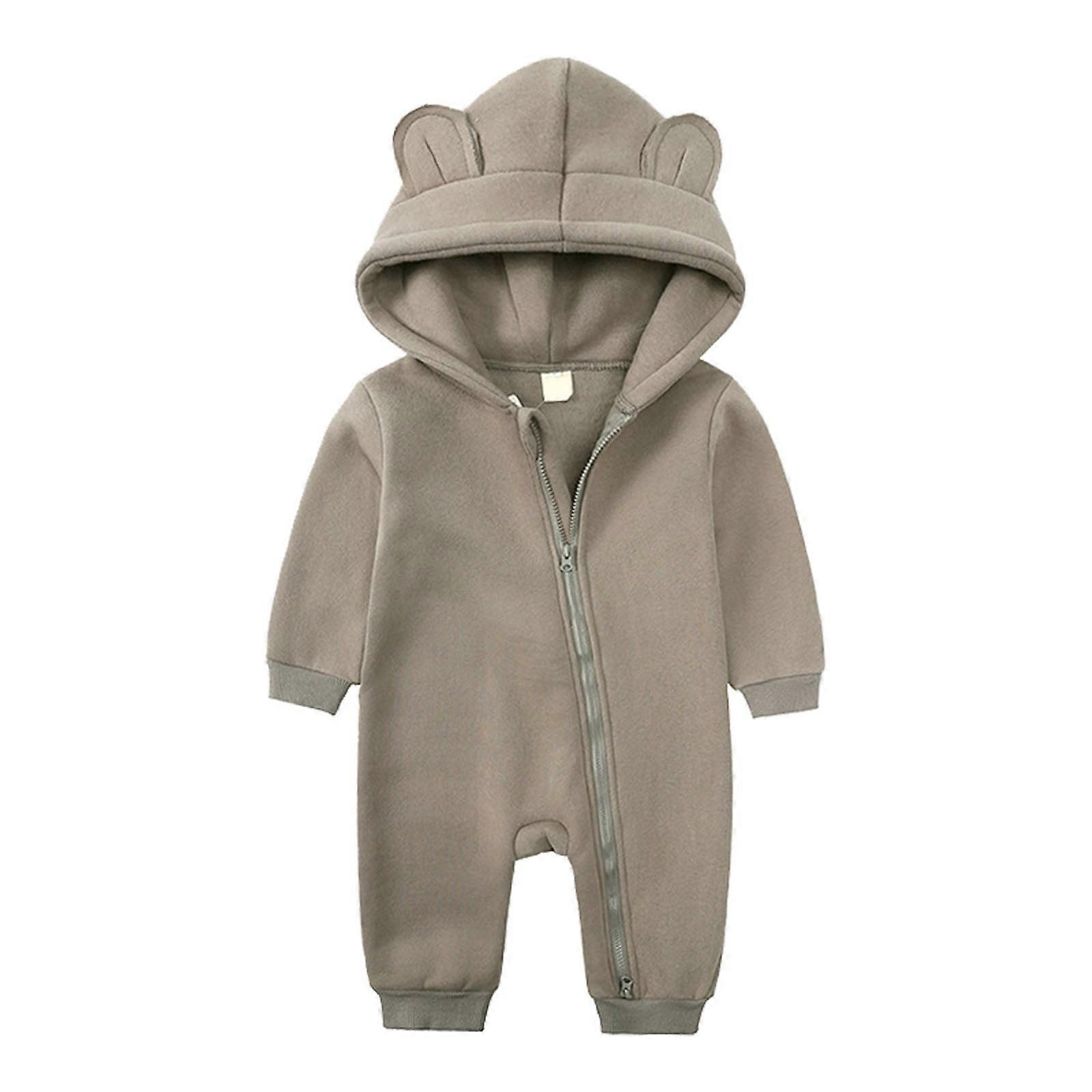 Clearance 6-9M Girl Boy Jumpsuit, Bear Hooded Zippered, Autumn/Winter, Party/Birthday Gift (Coffee, 66)