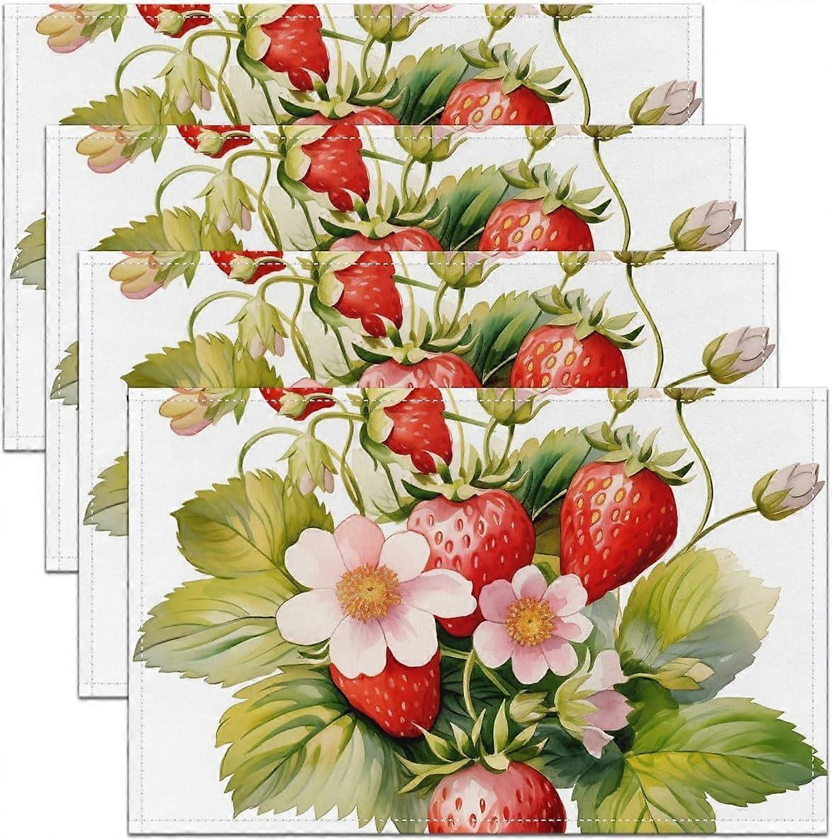 Kawaii Strawberry Table Mats, 12"x18", Set of 4, Fruit Food Theme Placemats for Indoor/Outdoor Dining & Summer Decor