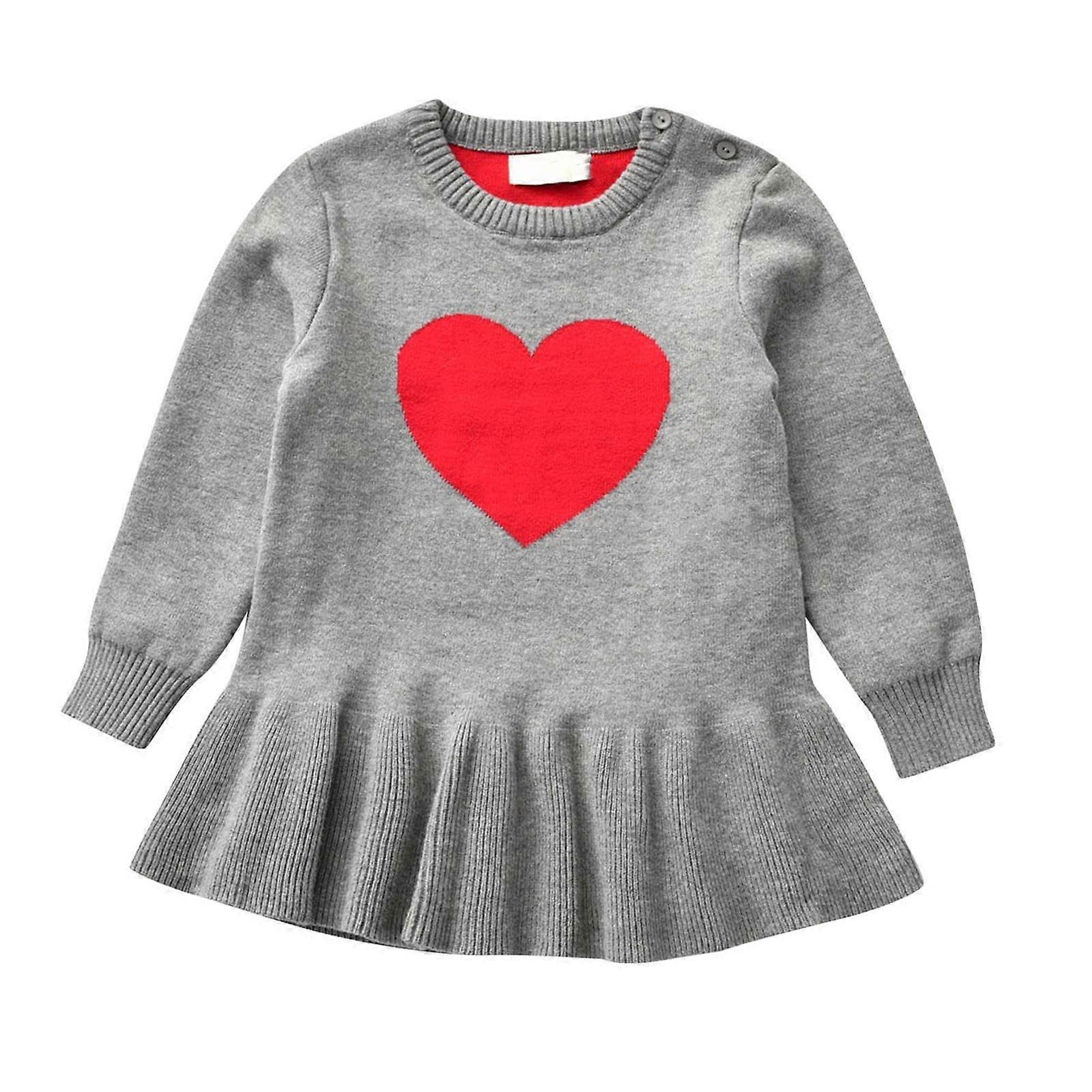 Cute Heart-Printed Cotton Sweater Dress for Toddler Girls – Round Neck, Long Sleeve, Pleated, Valentine’s Day Style, Spring/Fall Wear