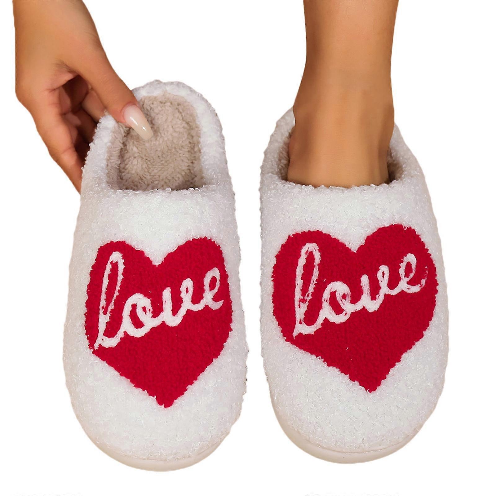 Ediodpoh Winter Valentine's Day Cotton Slippers Indoor Home Couple Plush Warm Slippers Winter Slippers for Women Red 9.5