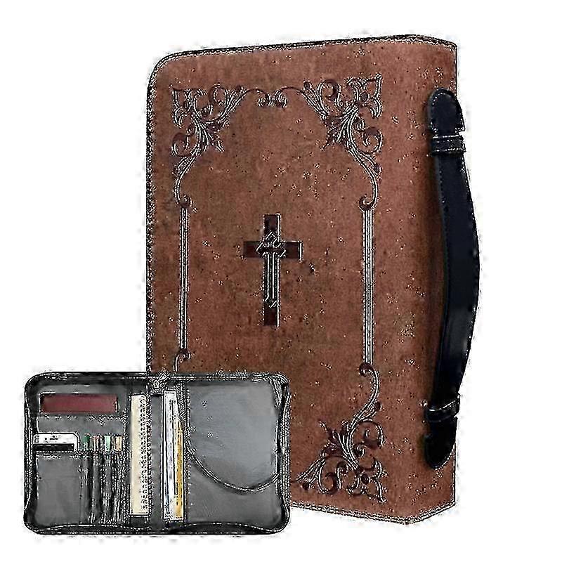 Leather Bible Bag with Zipper Handles for Church and Travel