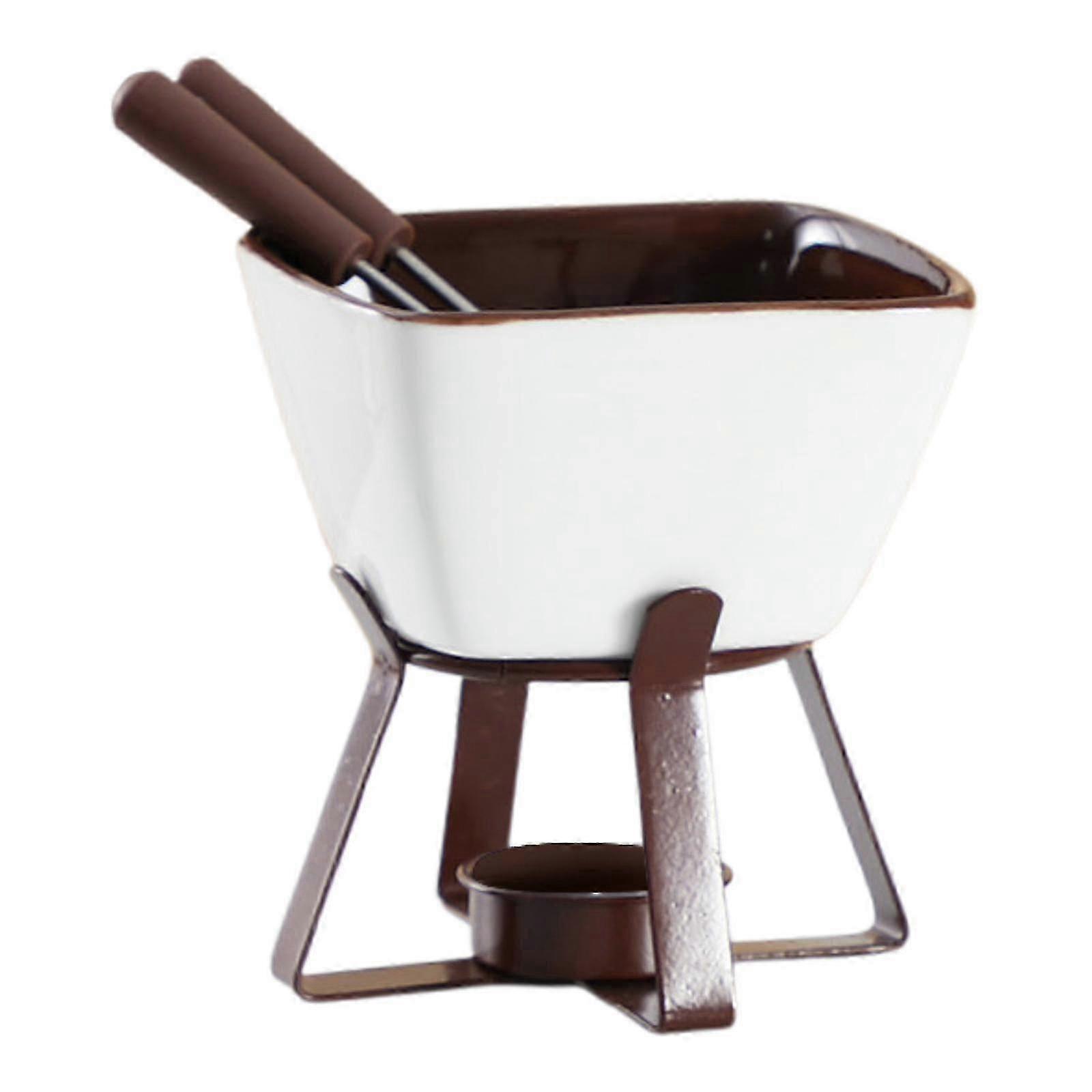 Fondue Pot with 6 Forks for Cheese Chocolate Melting Family Dinner Wedding