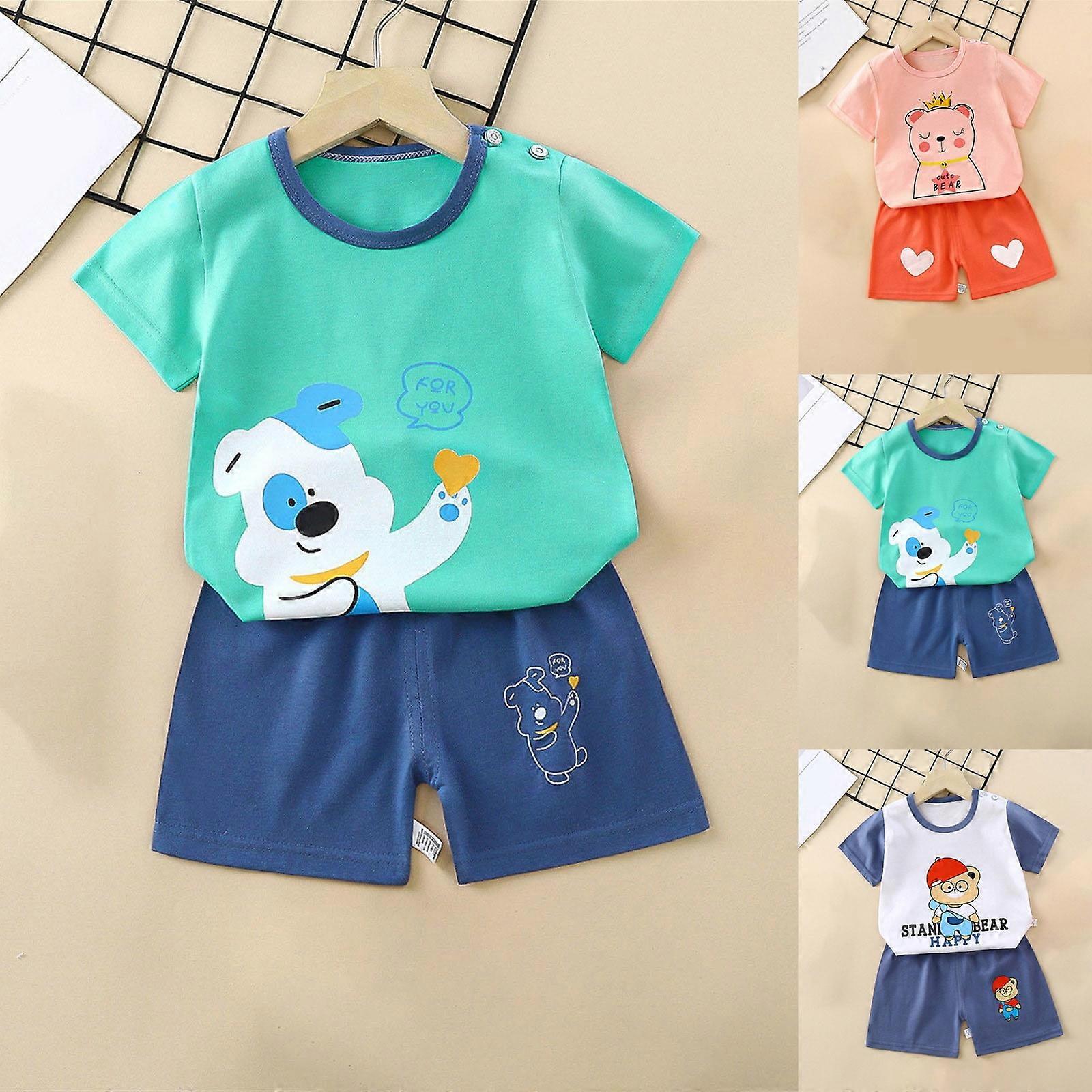 Toddler Girl & Boy Short Sleeve Shorts Set – Green Summer Casual Outfit, Comfortable & Breathable, 5-6 Years