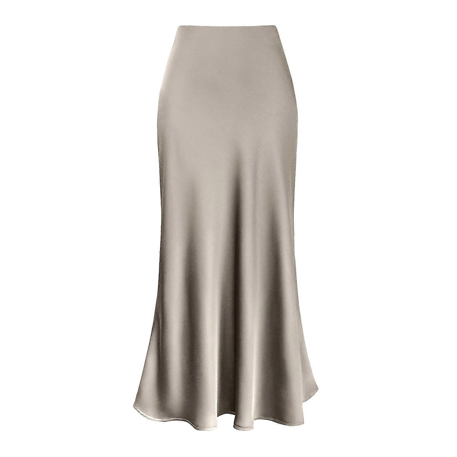 Ediodpoh Satin Midi Skirt Womens High Waist Solid Color Casual Skirt with Zipper Women's Skirts Khaki XL