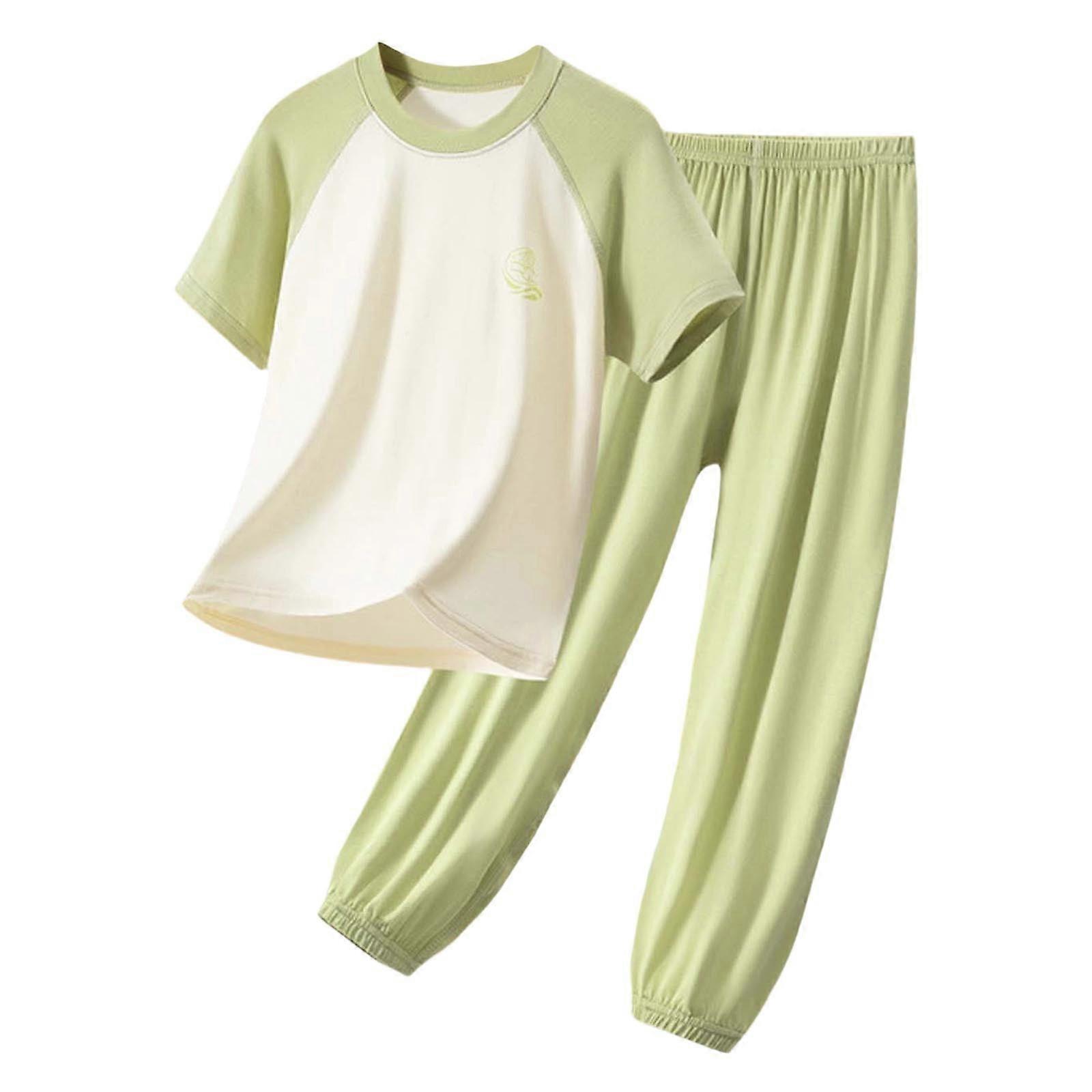 Ediodpoh Kids Modal Sleepwear Set, Soft Breathable Two-Piece Pajamas for Boys 9-10 Years, Green_003