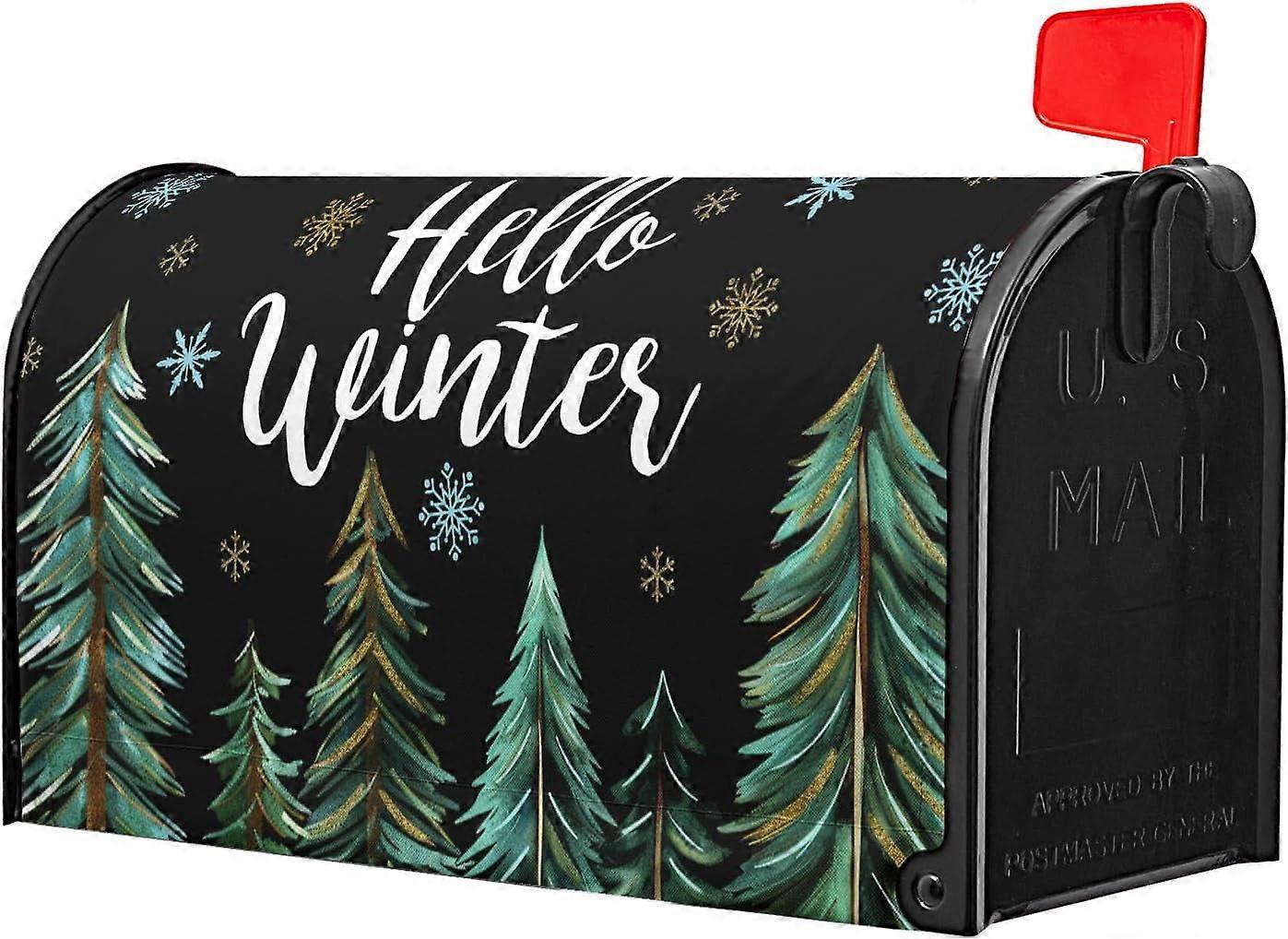 Hollw Winter Snowflakes Mailbox Cover, Black & Green Forest Design, Magnetic, 21" x 18", Compatible with Standard Mailboxes