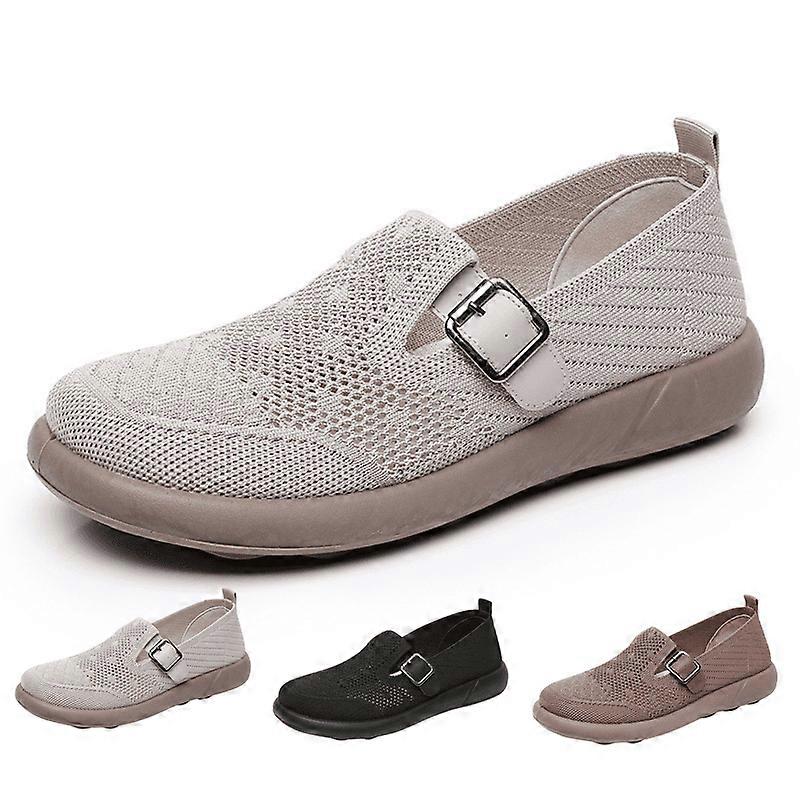Step into All-Day Comfort with Women’s Slip-On Shoes!Designed for active women who value comfort and style, these breathable mesh sneakers combine softness, support, and effortless wear. The flyknit upper ensures maximum airflow to keep feet cool, while the wide toe box eliminates pressure on bunions or wide feet.Why You’ll Love Them:✔ No More Sweaty Feet! – The airy, stretchable fabric wicks moisture, making these shoes for women perfect for summer.✔ Stable & Safe – The grooved rubber outsole grips wet or dry surfaces, ideal for walking shoes for women who need reliability.✔ Slip-On Ease – Just step in and go! No bending or tying—great for busy moms, travelers, or anyone who loves casual shoes for women.✔ Versatile Style – Pair them with jeans, leggings, or dresses! The sleek metallic accent elevates your look from errands to brunch. 【Breathable & Comfortable】Made with ultra-lightweight flyknit mesh fabric, these women’s slip-on shoes keep feet cool and dry, preventing sweat and odor even in warm weather. Perfect for all-day wear! 【Non-Slip & Flexible Sole】The anti-skid rubber outsole provides excellent traction, while the easy-bend soft sole reduces foot fatigue, making them ideal for walking, running, or casual wear. 【Wide Toe & Protective Design】The roomy round toe prevents crowding, the reinforced toe cap protects against bumps, ensuring comfort for wide feet or long walks. 【Lightweight & Supportive】These women’s shoes feature a cushioned insole and lightweight construction for effortless movement, whether you're running errands or traveling. 【Stylish & Convenient】The modern metallic buckle adds a chic touch, while the slip-on design makes these women’s sneakers easy to wear—no laces needed!