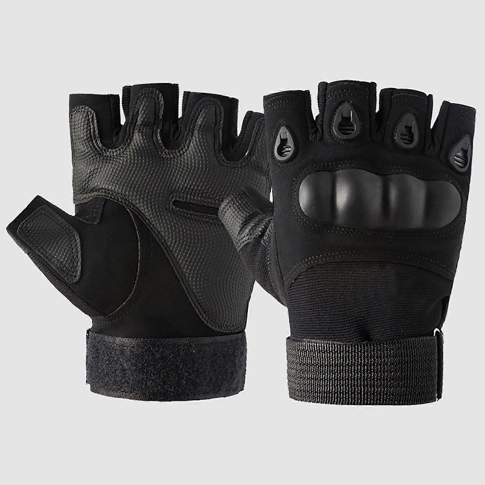 OWSOO Fingerless Gloves with Hard Knuckle -Slip Adjustable Half Finger Sports Gloves for Fitness Climbing Hiking Cycling