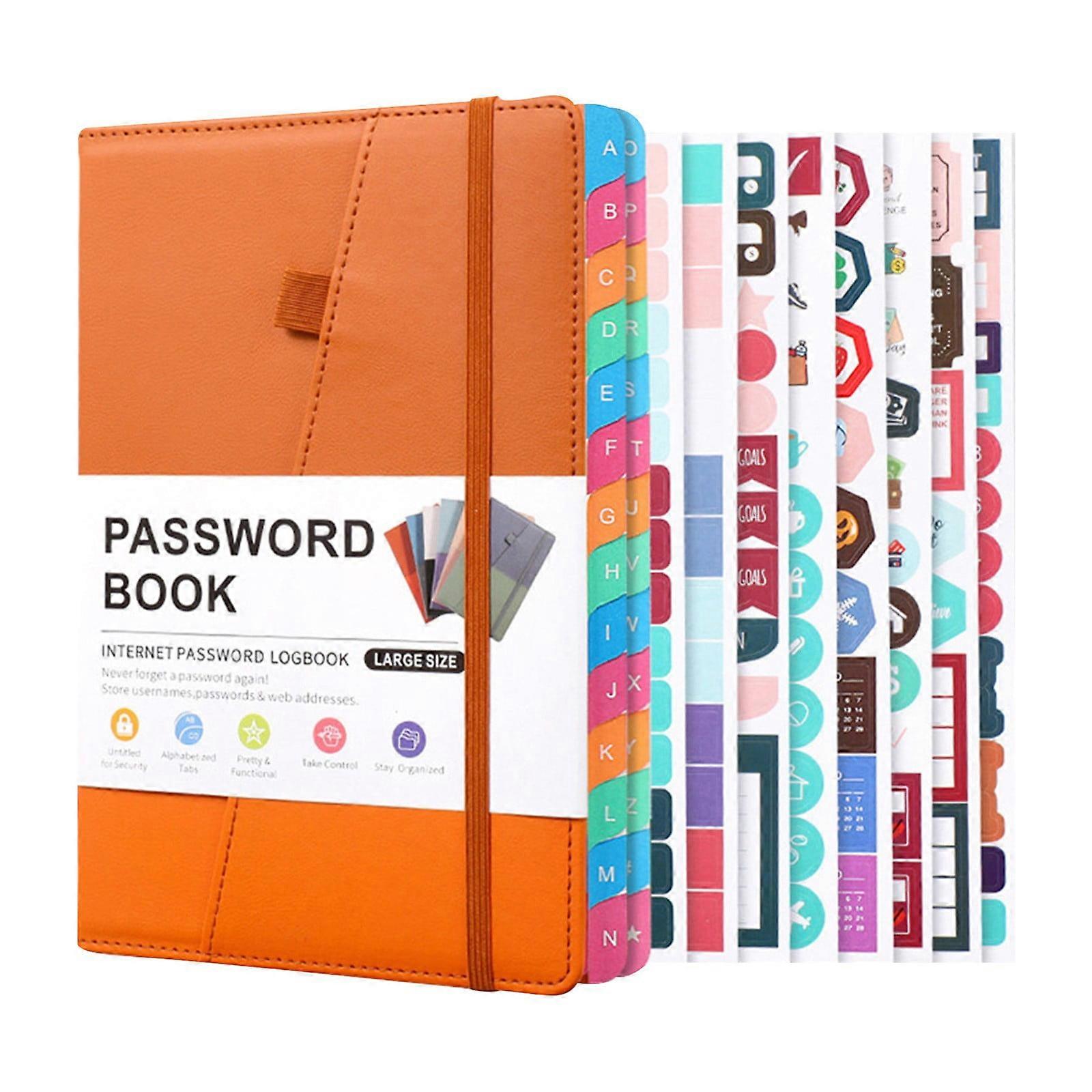 A5 Brown & Orange Password Book with Alphabet Tabs – Compatible with Seniors, Website/Login Log Notebook