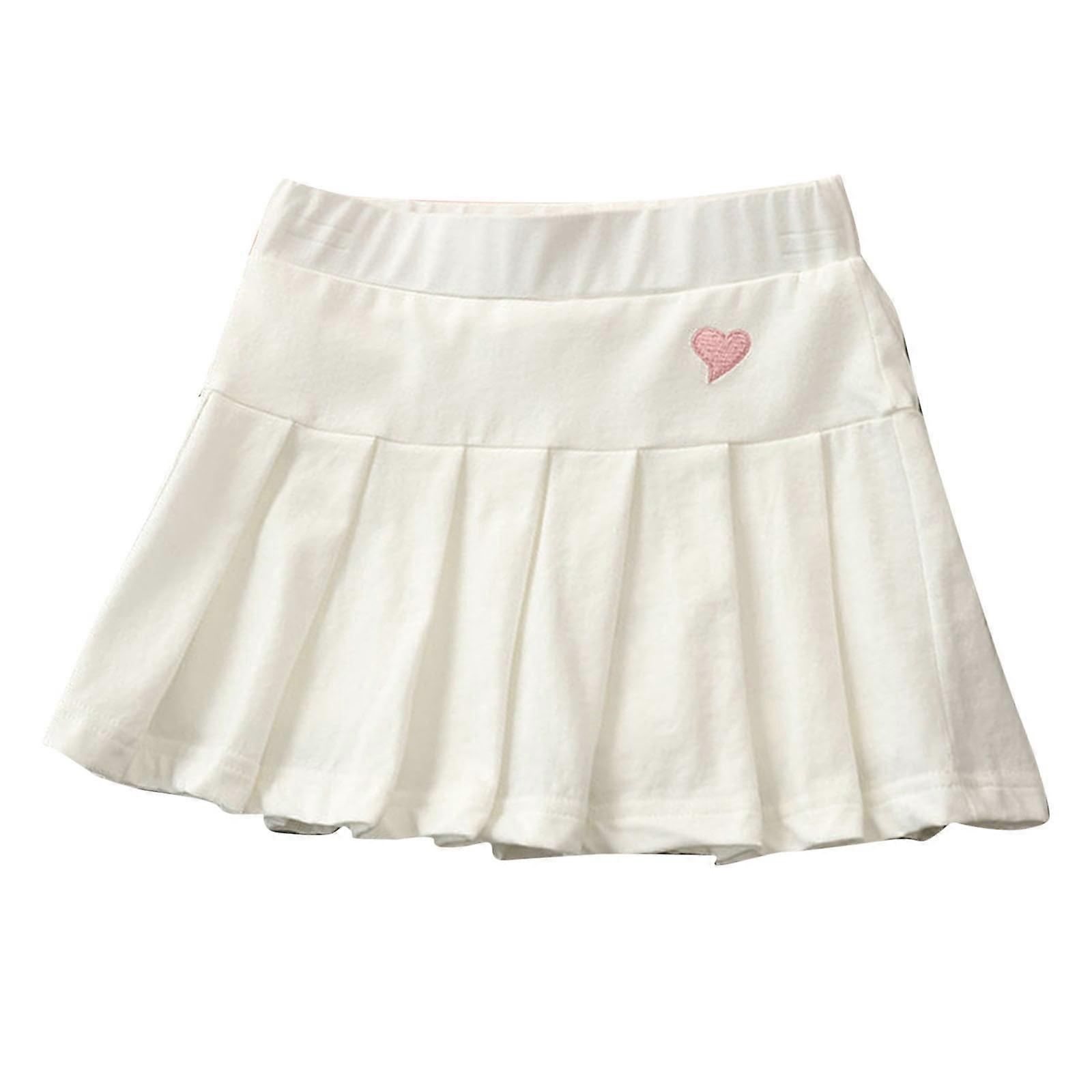Kids Girls Pleated Skirt with Safety Under Dress Shorts Child's Summer Printed Kids Baby Botton Short Skirt Cute Cotton Shorts White