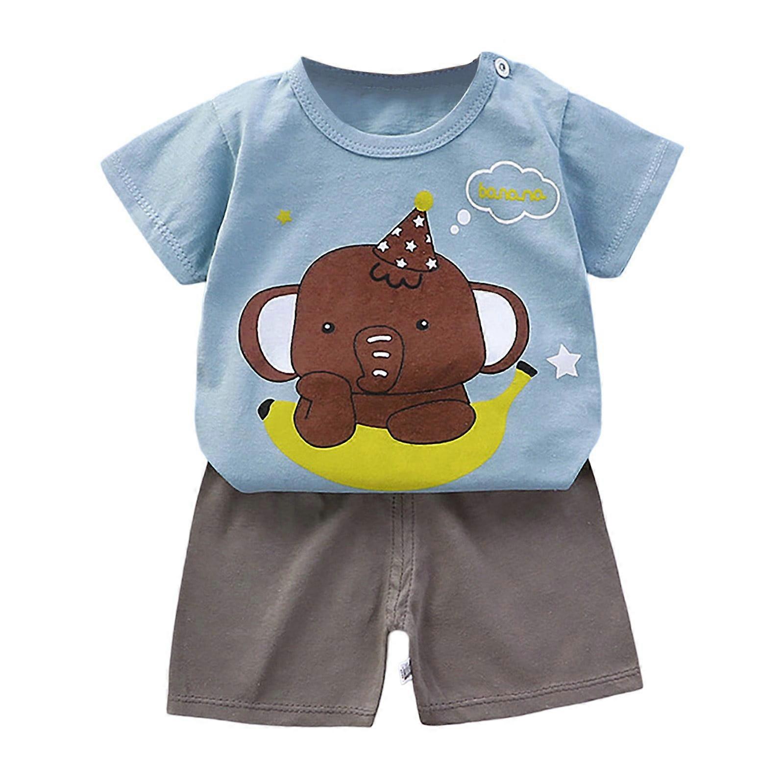 Kid Toddler Baby Boys Clothes Girls Summer Cartoon Printed Short Sleeved Tops and Shorts 2PC Children's Suit 12-18 Months