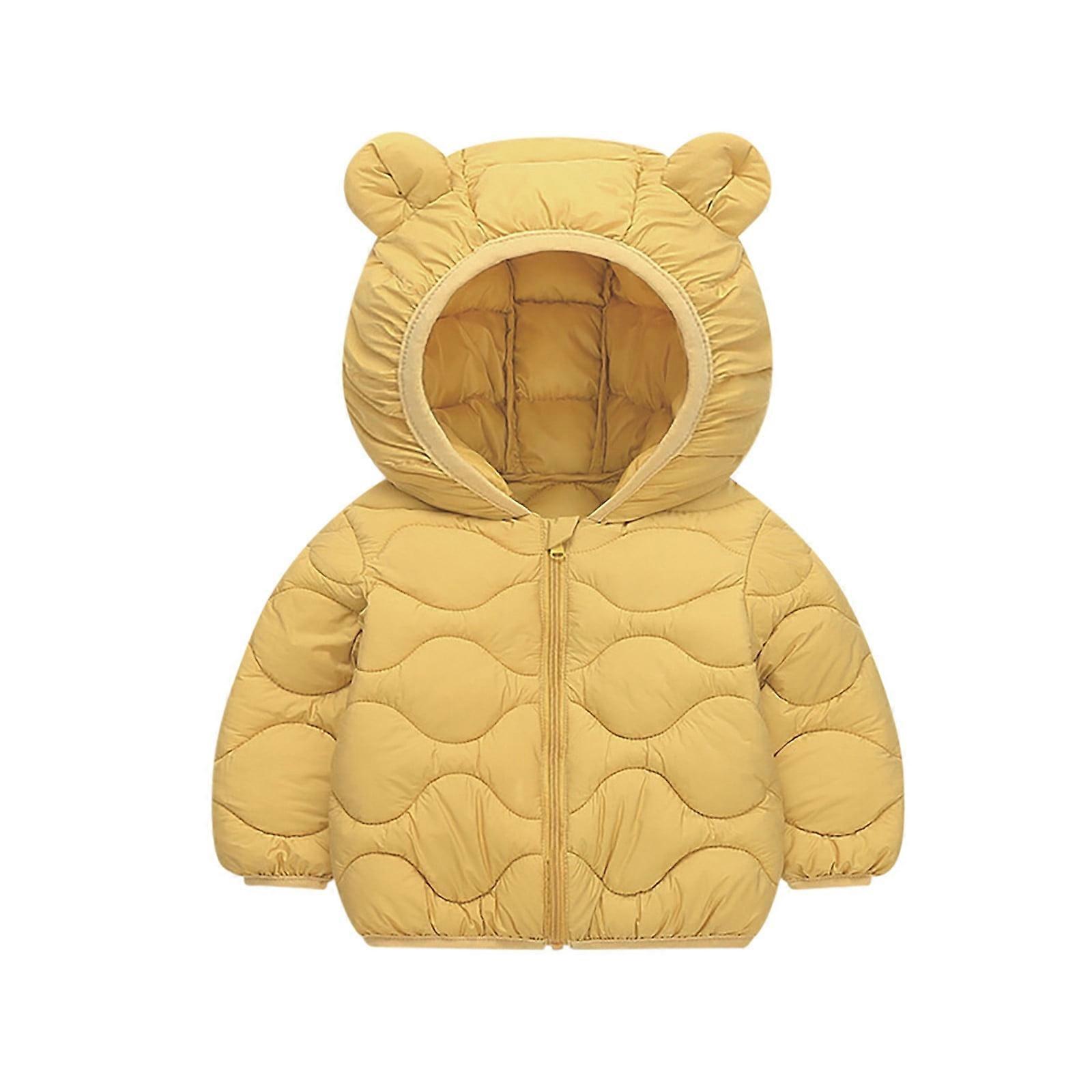 Baby Boys Coats & Jackets Winter Kids Solid Color Bear Ears Hooded Long Sleeve Warm Tops Coat Activewear,Yellow,18-24 Months