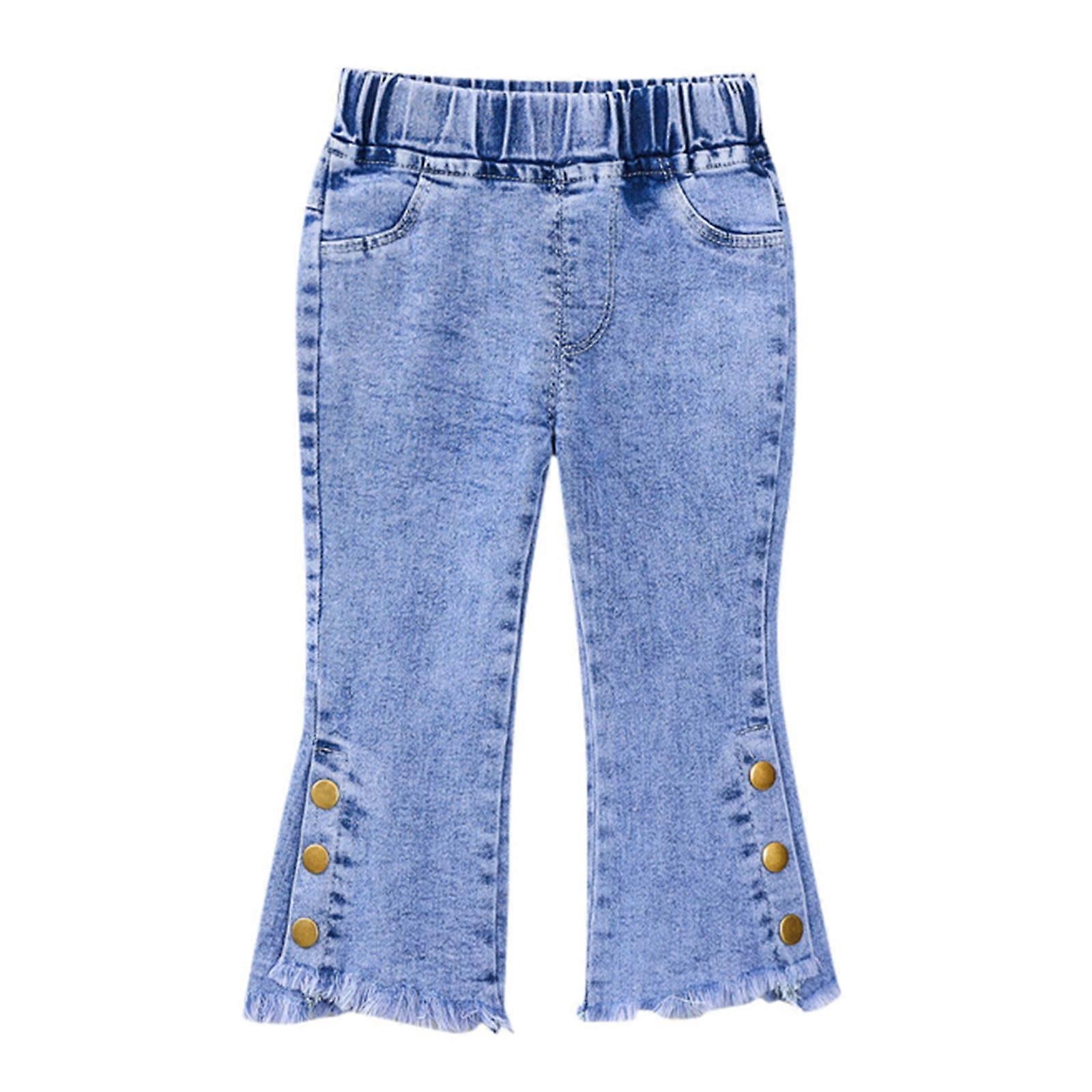 Baby Girls Denim Jeans Toddler Kid Pants Jeans Soft Elastic Waist Denim Pants Material: polyester Size chart: Size:80 Recommended age:6-12 Months Waist:34cm/13.39'' Length:48cm/18.90'' Size:90 Recommended age:12-18 Months Waist:36cm/14.17'' Length:50cm/19.69'' Size:100 Recommended age:18-24 Months Waist:38cm/14.96'' Length:54cm/21.26'' Size:110 Recommended age:3-4 Years Waist:40cm/15.75'' Length:58cm/22.83'' Size:120 Recommended age:4-5 Years Waist:42cm/16.54'' Length:61cm/24.02'' Girls Pants Package: 1PC Toddler Girl Jeans. Both Hand Wash And Machine Wash Are OK. Designed To Be An Everyday Go-to For Your Child's Wardrobe. This Jean Is Suitable For 6-12 Months,12-18 Months,18-24 Month,3-4 Years,4-5 Years Baby Adjustable elastic band inside,mini pocket cute design,straight line
