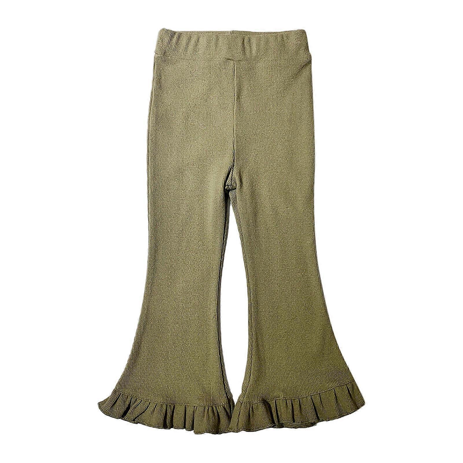Toddler Girls Flare Pants Ruffle Hem Cotton Pants Cute Sweet Elasticity Flared Trousers Toddler Kids Baby 2025 Fashion Leggings Green 4-5 Years
