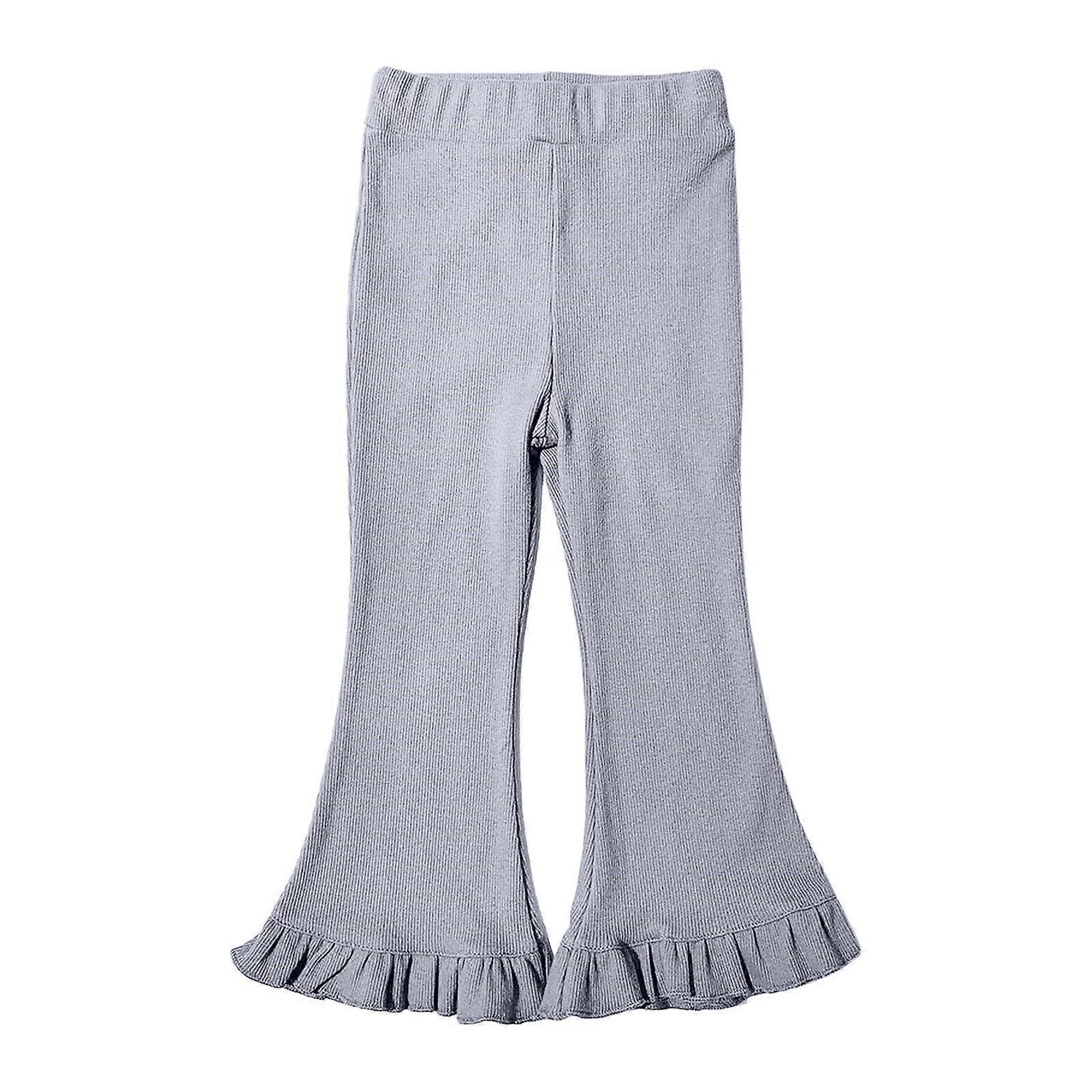 Kids Girls Flare Pants Ruffle Hem Cotton Pants Cute Sweet Elasticity Flared Trousers Toddler Kids Baby 2025 Fashion Leggings Gray 6-7 Years