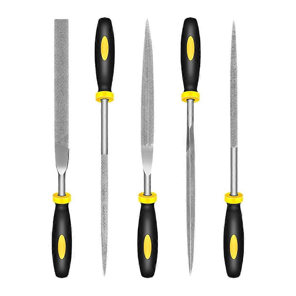ORDDIART 5-Piece Steel File Set with Black Comfortable Ergonomic Handles, Ideal for Woodworking and Metalworking, 7x0.2x0.2in Files