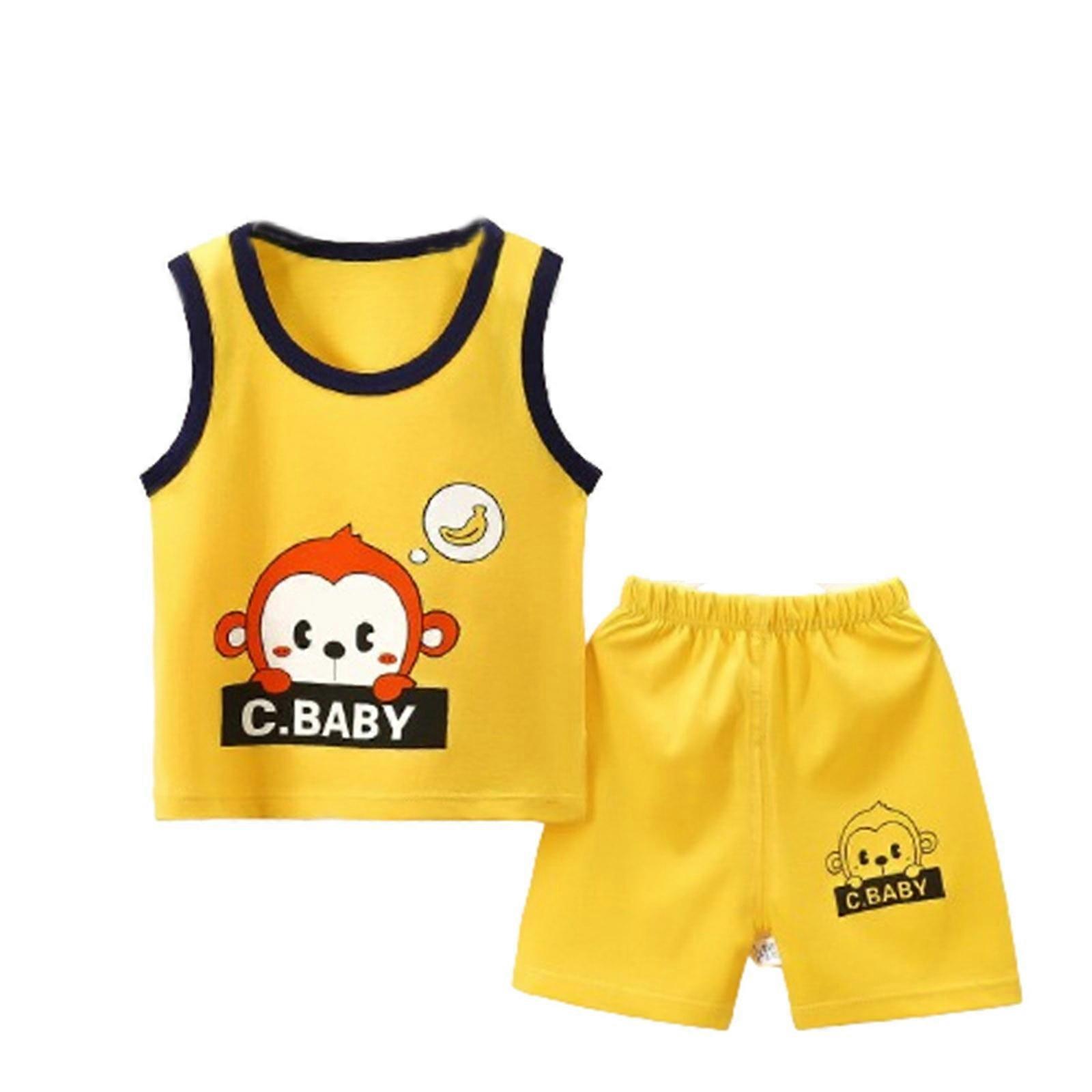 Toddler Boys 2 Piece Outfits Cartoon Cotton Tank Tops Shorts Set Summer Clothes Baby Cute Printed Round Neck Tank Shorts Suit Yellow