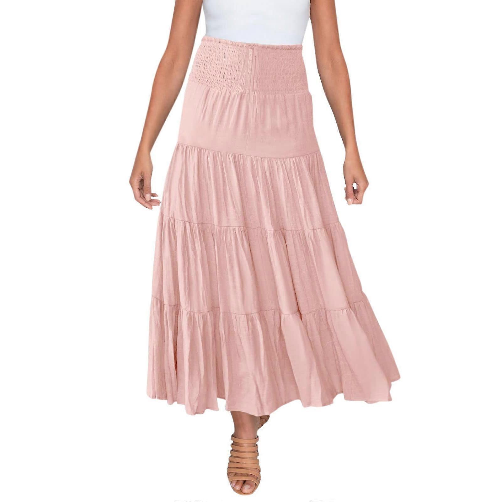 Ediodpoh Womens Skirts Summer Elastic High Waist Boho Maxi Skirt Casual Drawstring A Line Long Flowy Ruffle Skirt for Women Long Skirts Pink_001 L