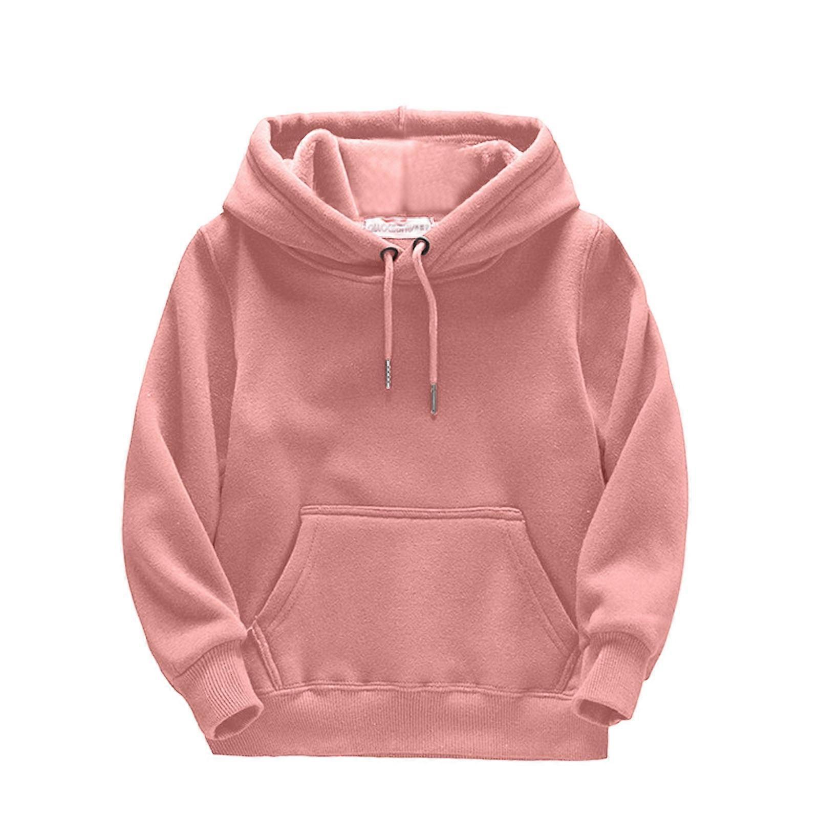 Kids Child Toddler Boys Girls Solid Long Sleeve Patchwork Hooded Thickened Warm Sweatshirt Pullover Blouse Tops Outfits Clothes Z1-Pink 4-5 T