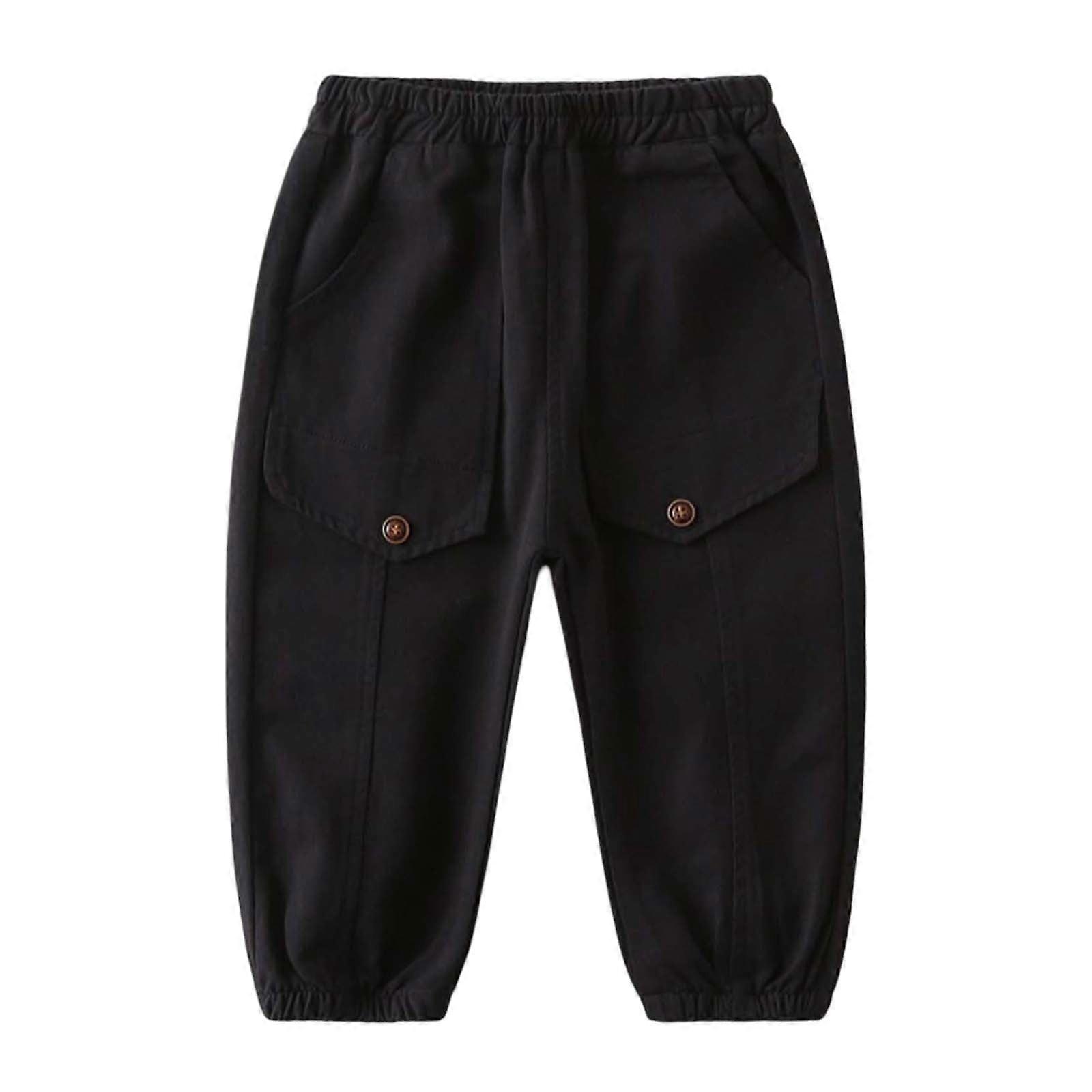 Ediodpoh Boys' Casual Trousers for School & Everyday Wear, Solid Color, Comfortable Workwear Style Pants for Toddlers 3-8 Years, Black 5-6Y