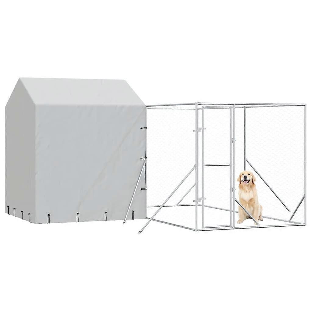 Vidaxl Outdoor Dog Kennel With Roof Silver 4X4x2.5 M Galvanised Steel Dog Kennels