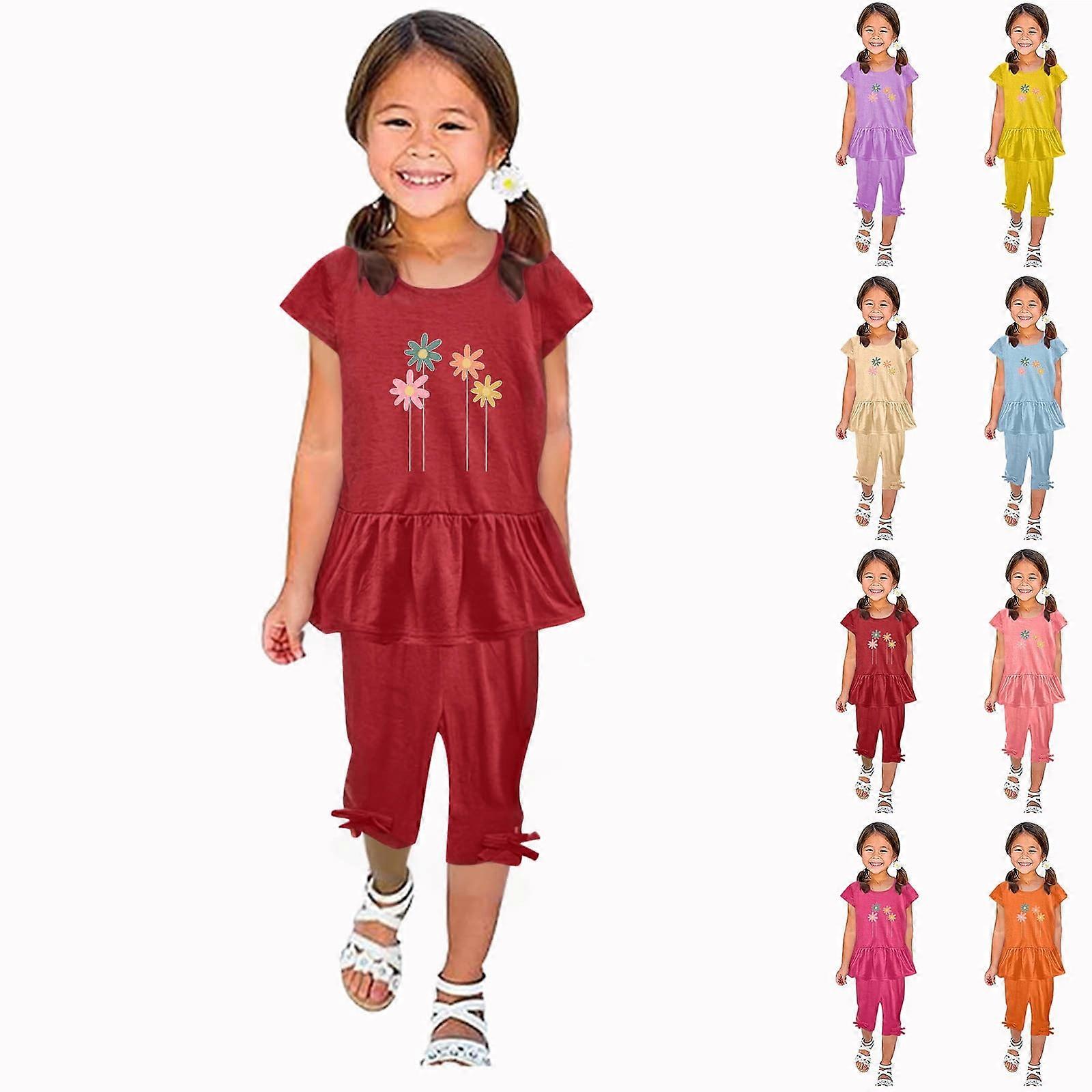 Kids' Casual Short Sleeve 2-Piece Set, Orange, Size 110 – Compatible with Toddler Winter & Summer Wear