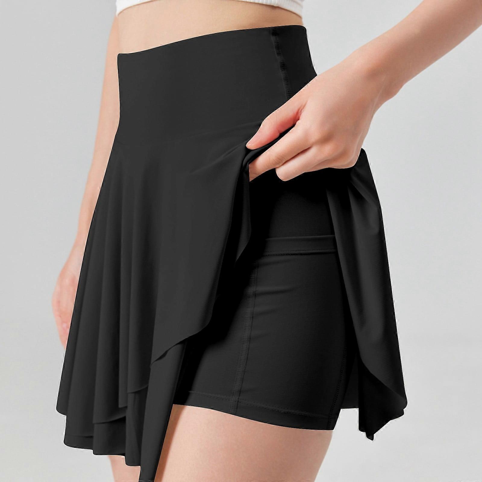 YOUSNH Women's Sun Skort Ice Cool Blocking Two in One Chafing Tennis Skirt for Sports & Fitness Women Skirt Black XL