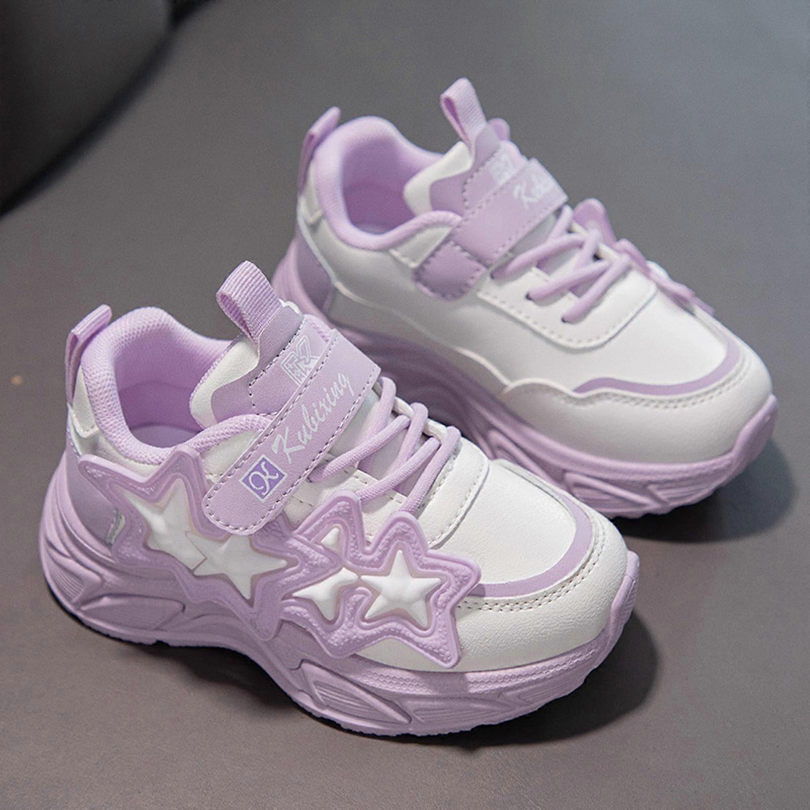 YOUSNH Girls Sports Shoes with Star Pattern, Flat Bottom, Comfortable Casual Kids Shoes – Compatible with Kids Size 13.5